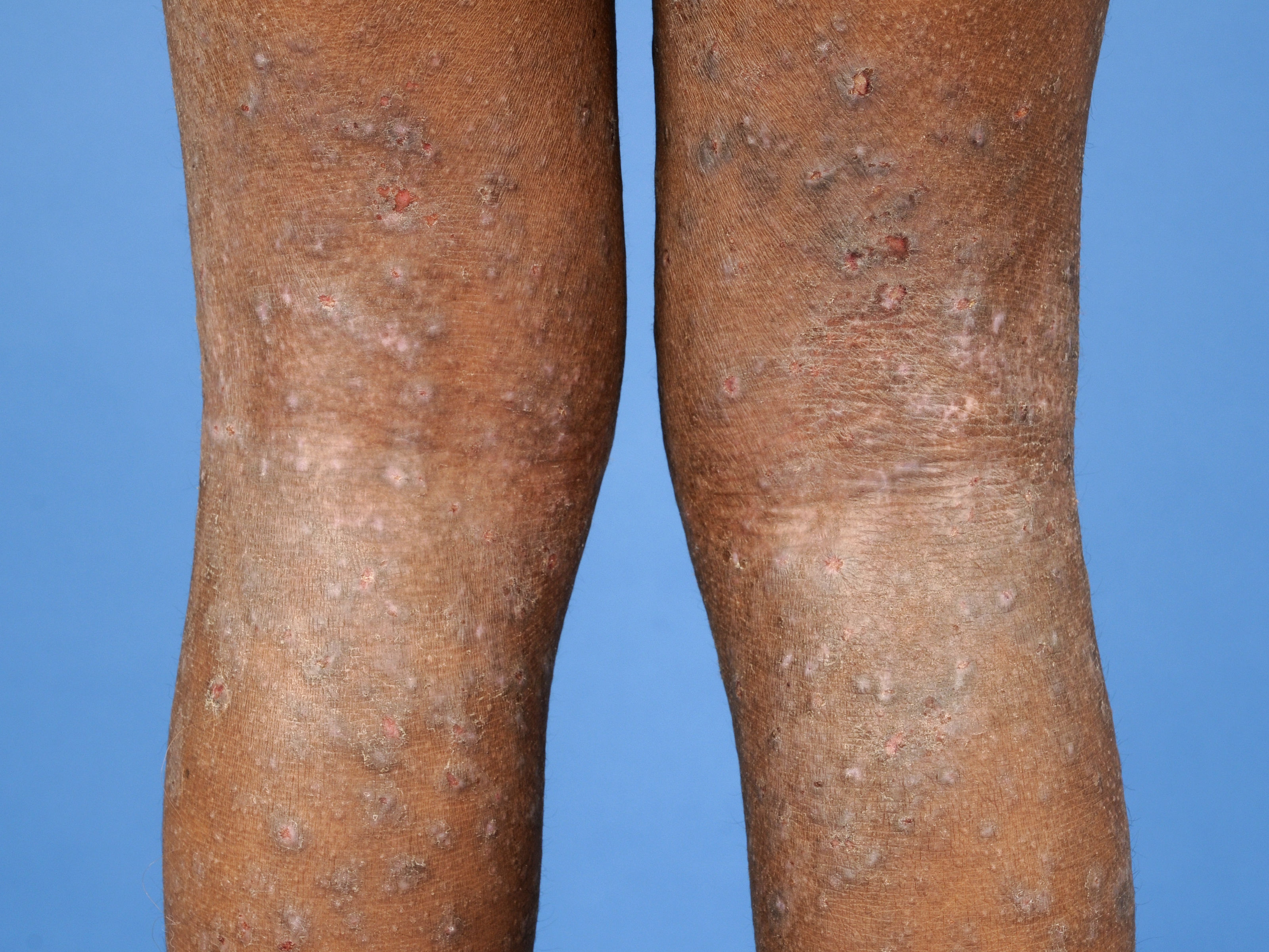The diagnosis is based on the presence of typical skin lesions and itching. Furthermore, information about the occurrence of eczema, asthma, or allergies in the family can be helpful in making the diagnosis.