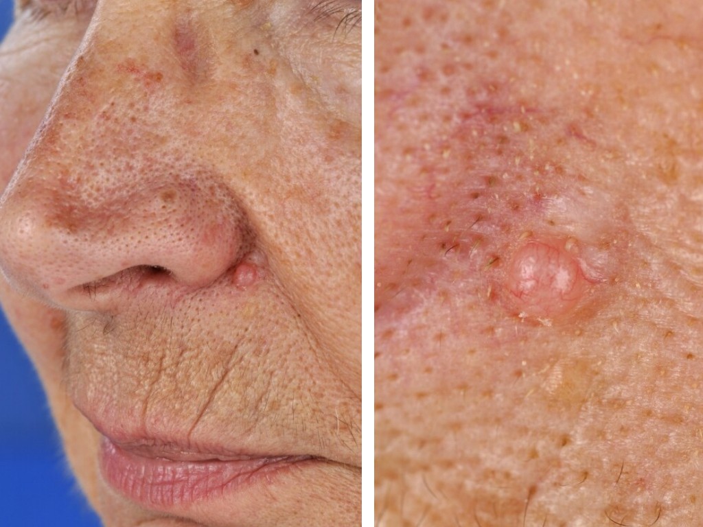 Basal cell carcinoma is therefore easily treated by removing it in its entirety. Preferably, of course, at the earliest possible stage, when it is still small and can be removed with the most minimal procedure possible. It does grow locally, so the longer you wait, the greater the damage to the surrounding tissue and the larger the scar. Therefore, it is important to have the skin inspected by a doctor promptly if new bumps or spots appear. Keep in mind that basal cell carcinoma grows slowly and can therefore be present for years.