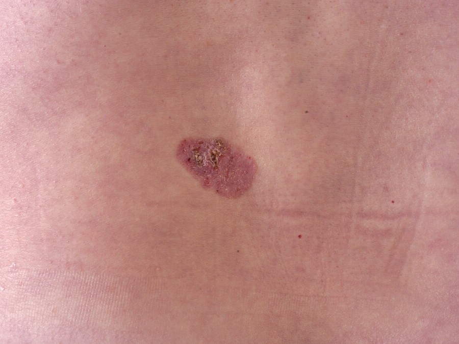 ![Superficial basal cell carcinoma (click on photo to enlarge) [source: www.huidziekten.nl] Superficial basal cell carcinoma](../../images/basaalcel-carcinoom-superficieel-1z.jpg) |