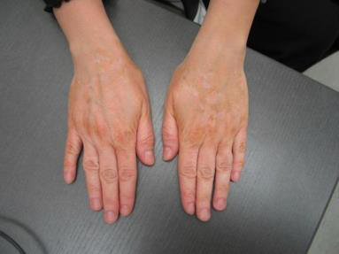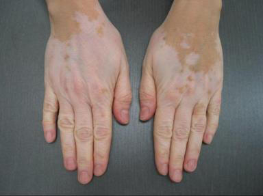 If you have vitiligo or other light spots, a self-tanning product might be helpful. Self-tanning products are especially effective on the hands and neck when camouflage or makeup isn't practical. Self-tanning products are creams that give the skin a gradual tan. This is because the cream penetrates the stratum corneum (the horny layer of the skin). This has no side effects and is not harmful to the skin. The resulting tan cannot be lost through perspiration or washing with soap, and therefore the color doesn't transfer to clothing. Prolonged swimming or bathing, and on chafed areas, can cause the tan to fade more quickly. Because the stratum corneum (the horny layer of the skin) continuously flakes off, the product will need to be reapplied from time to time.