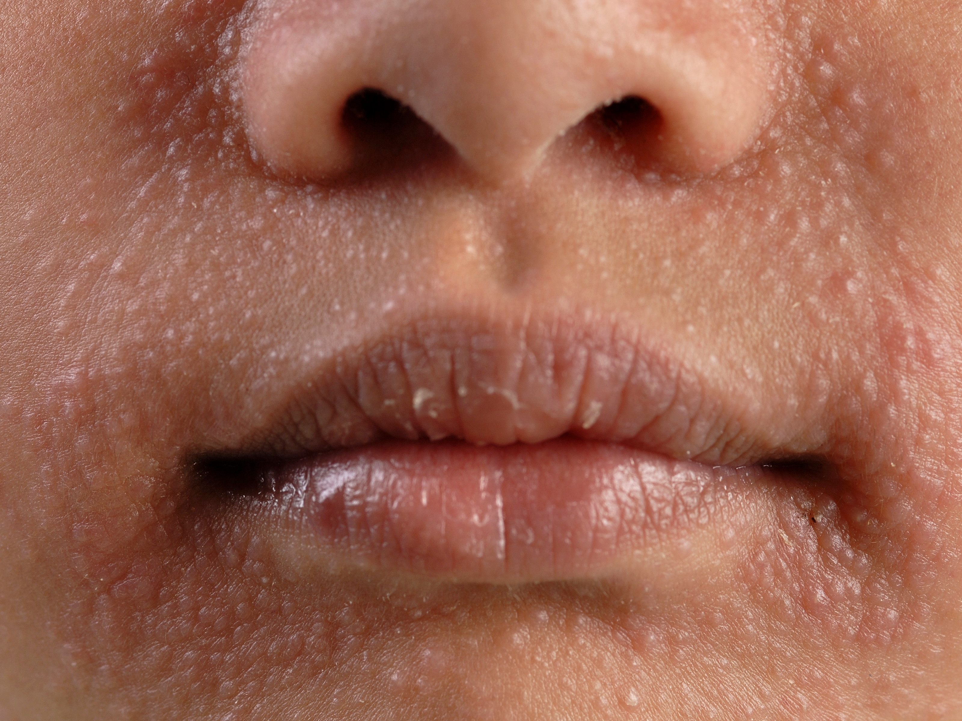 It can also develop in people who haven't used hormone creams on their face. Sometimes it develops spontaneously, without an obvious cause, and sometimes it's a reaction to various cosmetics applied to the face. This is especially common with foundation and other greasy or oily makeup or other skincare products.WHAT ARE THE PHENOMENA?Perioral dermatitis usually begins on the chin, next to the nose, and on the upper lip. Often, the entire area around the mouth is affected, with only a small rim of skin along the lips remaining free of pimples. Numerous small red pimples and pustules are visible on the affected skin. The skin may also be red and flaky and may feel slightly itchy or burning.HOW IS THE DIAGNOSIS MADE?The diagnosis is generally based on the clinical picture and its appearance. Perioral dermatitis can resemble other skin conditions involving small bumps and pimples around the mouth, such as rosacea and acne .HOW IS PERIORAL DERMATITIS TREATED?The most important thing is to immediately stop using the corticosteroid cream or ointment. The same applies to makeup. Instead of all kinds of cosmetics, you can use a simple, basic moisturizing cream, such as cetomacrogol cream. After stopping the corticosteroids, the symptoms will initially worsen, but this is a phase you have to go through. Eventually, they will disappear.