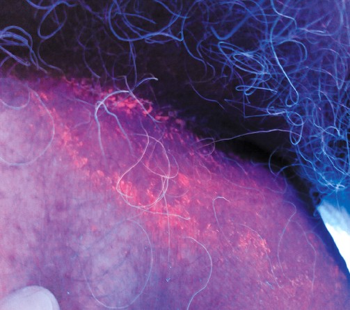 ![Orange-red under the Woods lamp (click on photo to enlarge) [source: www.huidziekten.nl] Orange-red under the Woods lamp](../../images/erythrasma-woods-2z.jpg) |