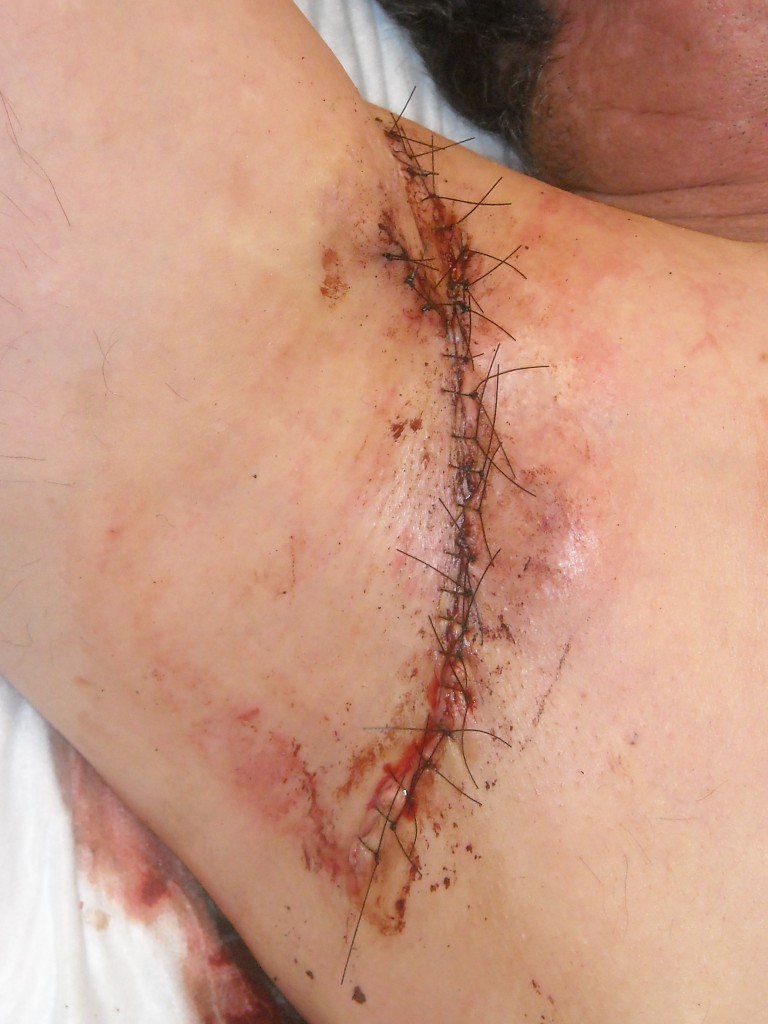 Wound sutured |