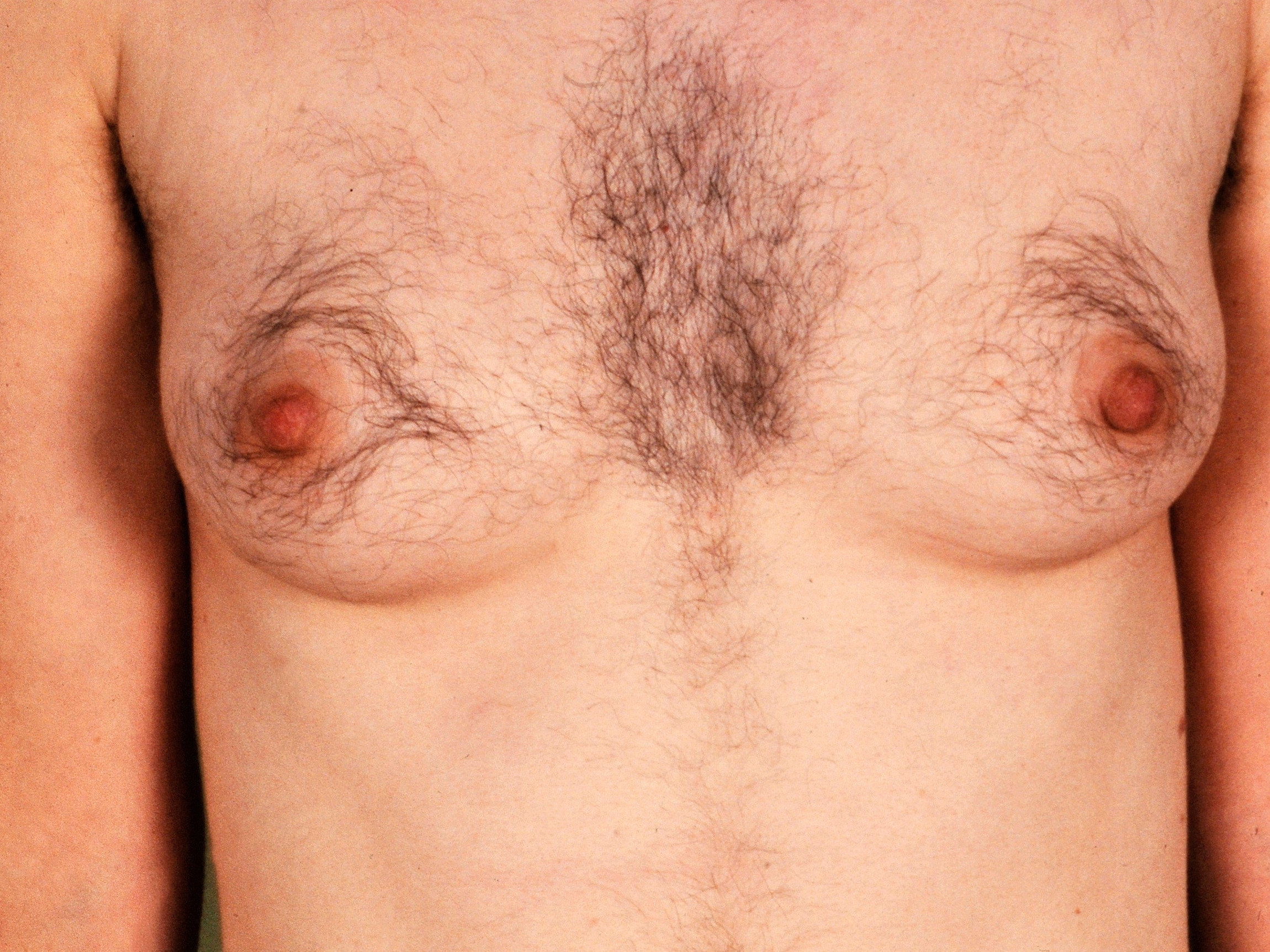 Testosterone is produced not only by the ovaries but also by the adrenal glands. Adrenal gland disorders can also cause hirsutism. In addition, certain medications can cause hirsutism (certain oral contraceptives, anabolic steroids, testosterone, danazol, metoclopramide, methyldopa, valproate, reserpine, phenytoin, hydralazine, minoxidil, tamoxifen, cyclosporine, prasterone, and others).WHAT DOES HIRSUTISM LOOK LIKE?Hirsutism causes dark, coarse hairs to appear on the upper lip, chin, neck, chest, around the nipples, abdomen, back, and inner thighs. There are varying degrees of hair growth, from a few dark hairs to heavy hair growth.