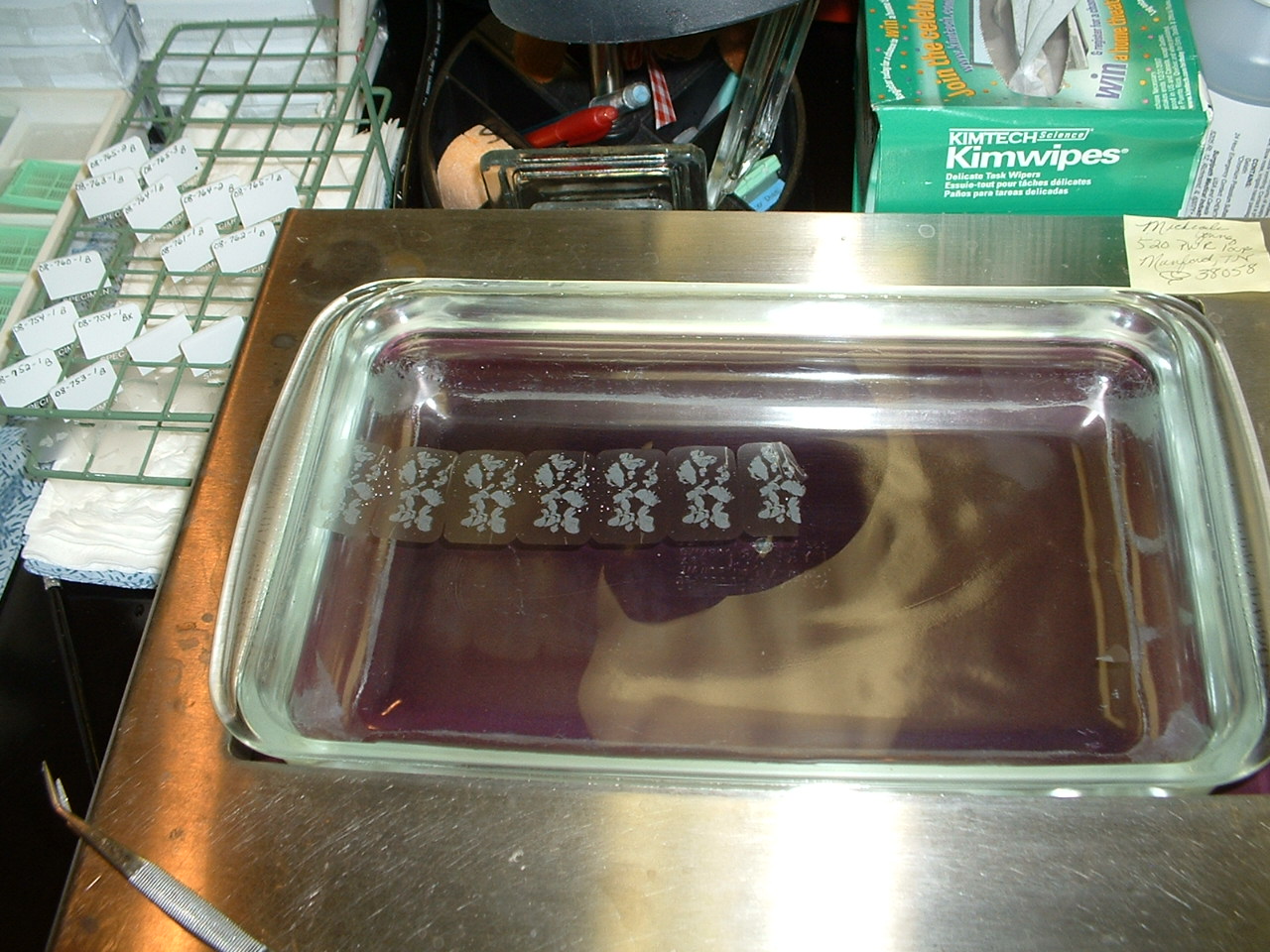 The slides containing the skin slices are then placed in an oven to dry and melt away any remaining wax.