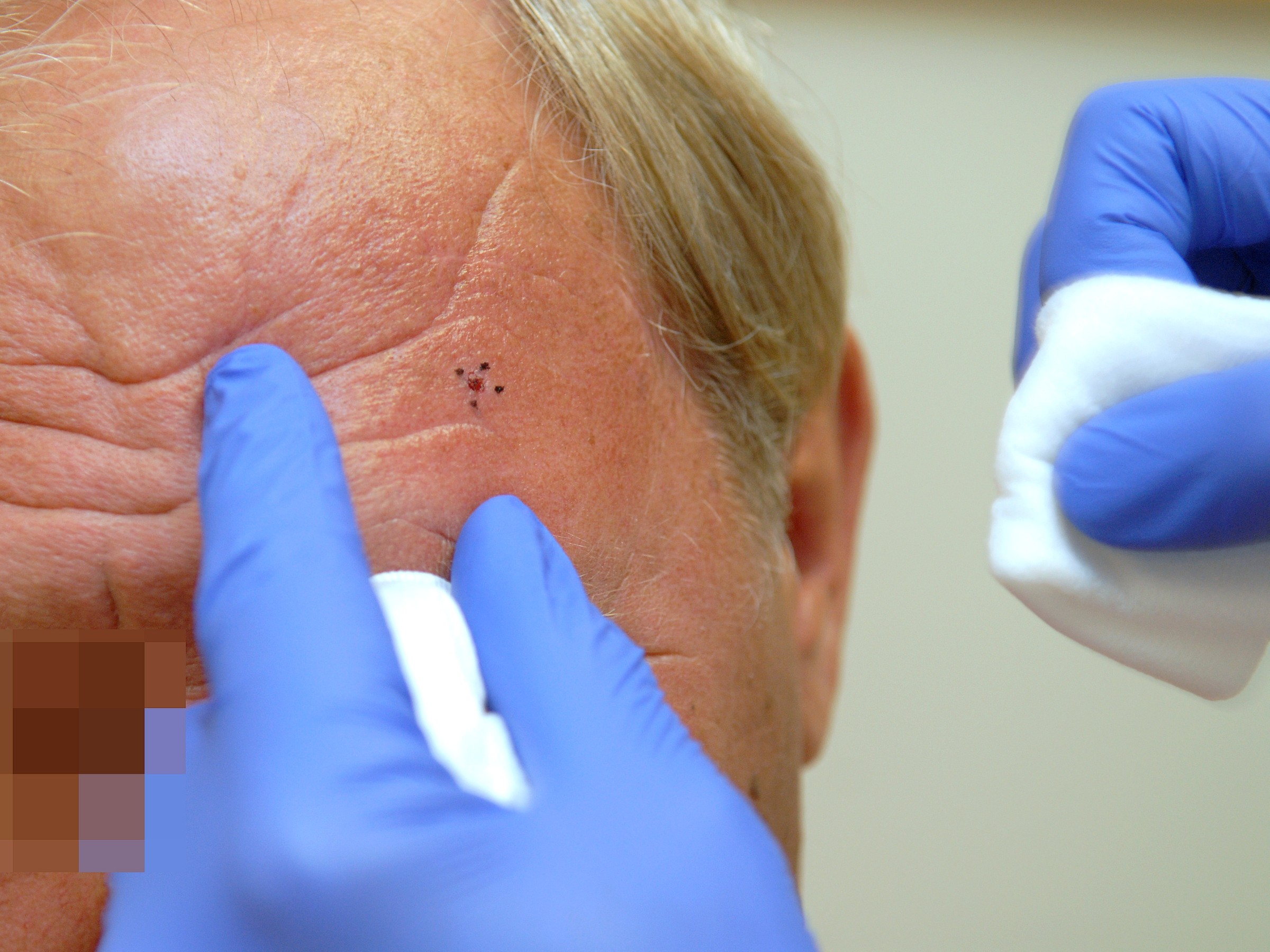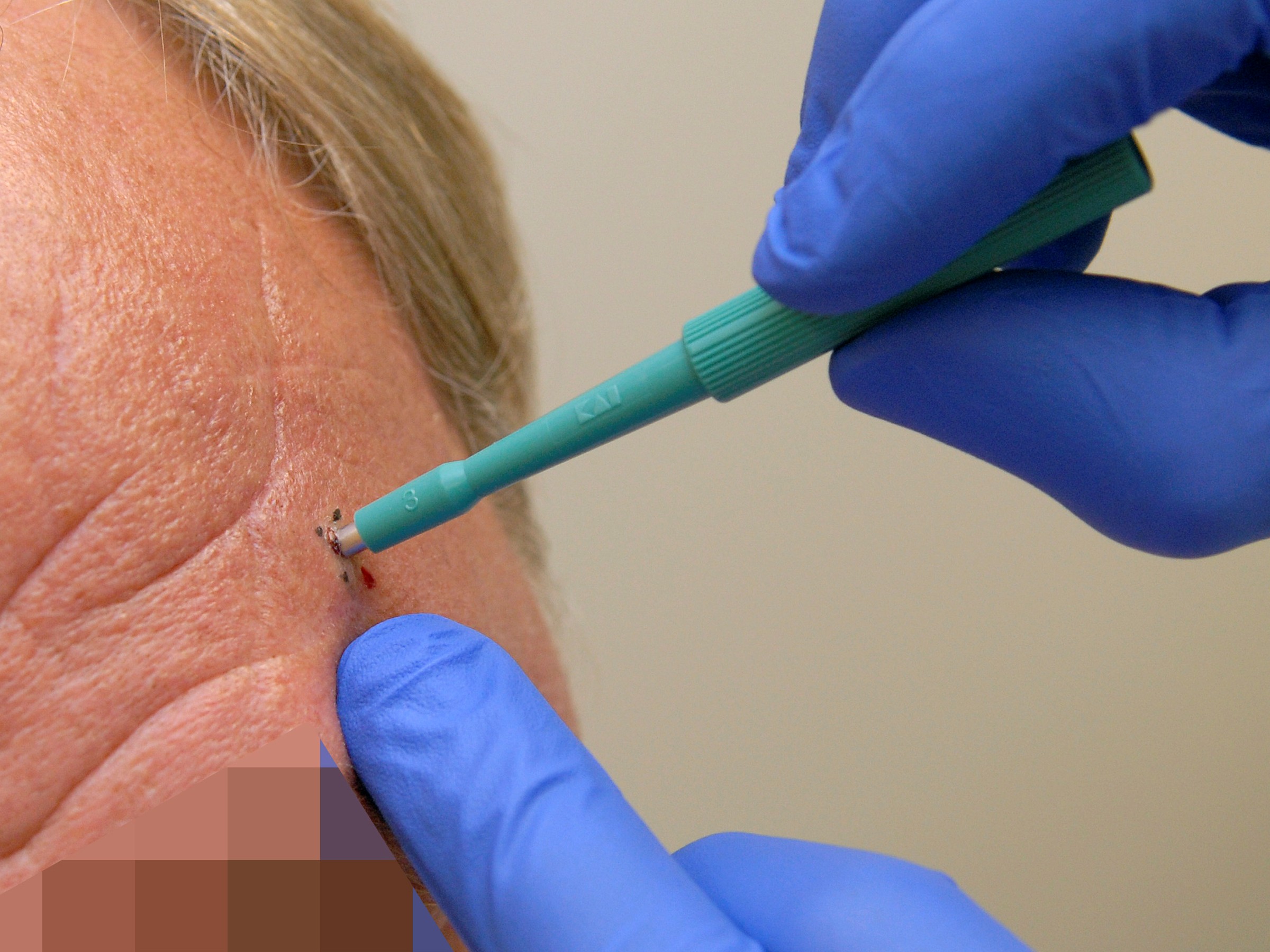 Biopsies are also often taken from moles to determine whether they are benign. Moles are often removed entirely for microscopic examination.HOW IS A SKIN BIOPSY TAKEN?The area where the skin biopsy will be taken is numbed by injecting a small amount of anesthetic (usually lidocaine). This is the same anesthetic used by dentists. The injection can be a little painful, but most patients find it very bearable. The biopsy is then removed by making a circular incision in the skin with a circular motion, then lifting it slightly with tweezers and cutting it off. This will leave a small round hole in the skin. This can be sutured, but this isn't essential. Small biopsy holes of 1-4 mm are usually not sutured. Larger holes of 4-8 mm are usually sutured, but even those aren't always sutured. A round hole in the skin heals very well and leaves a natural, round, and inconspicuous scar. The apple corer can also be used to remove moles with a nice round shape.