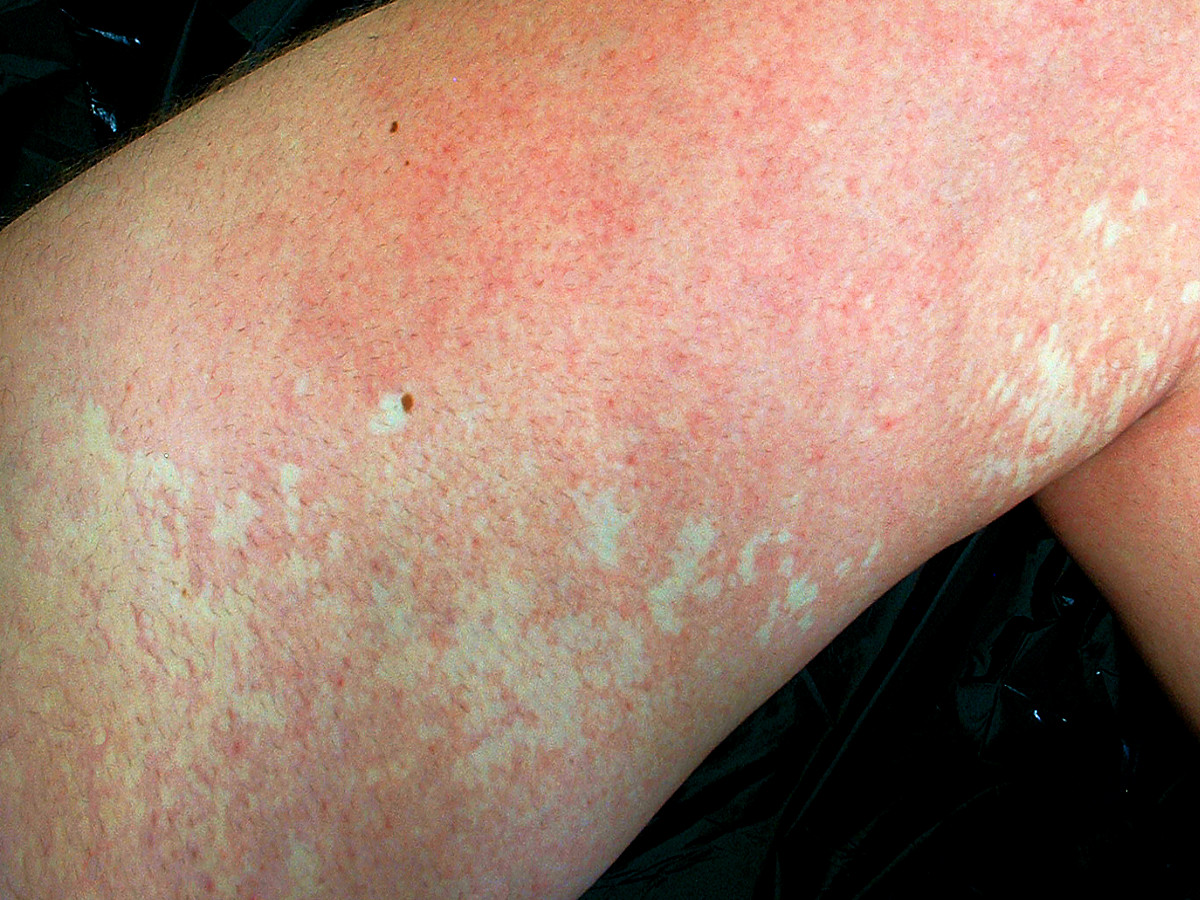 WHAT DOES A NAEVUS ANEMICUS LOOK LIKE?A nevus anemicus is a patchy, pale spot. It's usually on one side of the body, particularly the trunk. Most are on the chest. It can also appear on the neck or on the arms or legs. Usually, there's only one. Having multiple anemic nevi is common but very rare. The spot is barely visible, but becomes more noticeable when the difference in blood flow increases, for example, with heat or by rubbing the skin. In normal skin, the blood vessels dilate, and a red color develops. This doesn't happen with a nevus anemicus, because the blood vessels don't dilate. The spot remains stable for the rest of the patient's life, and no new spots develop. The spot is no more sensitive to sunburn than the surrounding skin because the pigment cells are intact. A nevus anemicus doesn't cause any symptoms. Parents often take it to the doctor because it's noticeable and they want to know what it is; sometimes it resembles vitiligo.HOW IS NAEVUS ANEMICUS DIAGNOSED?The diagnosis is based on the clinical picture, its appearance. Rubbing the skin increases the contrast. Pressing it with a glass compresses the blood vessels, and the difference between the spot and its surroundings disappears. A Wood's lamp (UV light, black light) can be used to examine the area, and then no difference is visible between the spot and its surroundings, while with a vitiligo spot, a significant difference is seen.HOW DOES A NAEVUS ANEMICUS OCCUR?A nevus anemicus is caused by an abnormality in the capillaries of the skin. These are narrowed or permanently constricted, and they lack the ability to respond to various stimuli by vasodilating. This results in a difference in blood flow to the skin, which causes the color difference. Taking a biopsy of a nevus anemicus is pointless; no abnormalities are visible under the microscope, and the capillaries appear normal.HOW IS A NAEVUS ANEMICUS TREATED?There is no treatment for a nevus anemicus, and treatment is unnecessary because there are no symptoms. In the rare situation where a nevus anemicus is on the face and is cosmetically unsightly, it can be camouflaged with makeup.WHAT ARE THE OUTLOOK?A nevus anemicus will not disappear, but it will also not grow larger. During childhood, the spot does grow along with the body, but after that, it remains stable, and no new spots develop. It is a harmless condition that never causes any symptoms. |