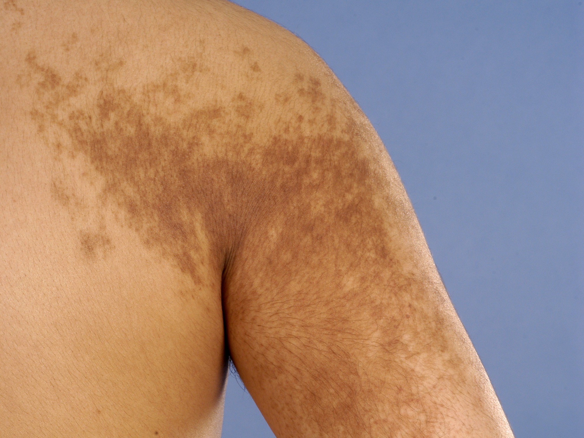 WHAT DOES A BECKER'S NEVER LOOK LIKE?Becker's nevus usually doesn't become visible until around age 8 and increases in size during puberty. It begins as a light brown spot, later thickening and developing excessive hair growth. Sometimes the spot suddenly becomes clearly visible after sun exposure, as the brown color increases with sunlight. A Becker's nevus can also be present from birth. Its size varies greatly, from a few centimeters to as large as half the upper body. There are also bumpy versions of Becker's nevus, which are caused by an increase in muscle fibers in the skin.WHAT IS THE CAUSE OF BECKER'S NEVER?The cause is unknown. The spot is predisposed from birth, but may not yet be visible. The cells that form the spot are hypersensitive to male hormones. This explains why the spot often only becomes visible during puberty and why it is more common in men. Acne can develop in a Becker's nevus, which is also attributed to hypersensitivity to male hormones.BECKER'S NEVUS SYNDROMEThere is a rare variant of Becker's nevus in which the breast on the affected side does not develop properly. This is called Becker's nevus syndrome. If the mole spreads across the breast, the breast can develop abnormally. The nipple or the entire breast then becomes smaller than on the other side. This can cause a significant difference in breast size, especially in women, but it also occurs in men. Becker's nevus syndrome, which is fortunately very rare, can also cause other abnormalities such as skeletal abnormalities (chicken breast, vertebral abnormalities), jaw or dental abnormalities (asymmetric facial features, missing teeth), extra nipples, and abnormalities of the labia or scrotum.HOW IS THE DIAGNOSIS MADE?The diagnosis is based on the clinical picture, i.e., its appearance. There are a few similar symptoms, such as café-au-lait spots and congenital moles . Sometimes a biopsy is necessary .HOW IS A BECKER'S NEVER TREATED?A Becker's nevus is a benign mole. It cannot develop into malignant tumors. Therefore, treatment is not necessary, nor is regular monitoring.