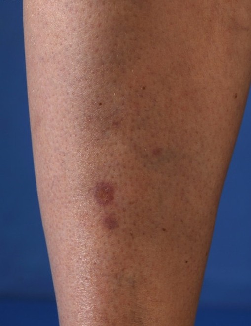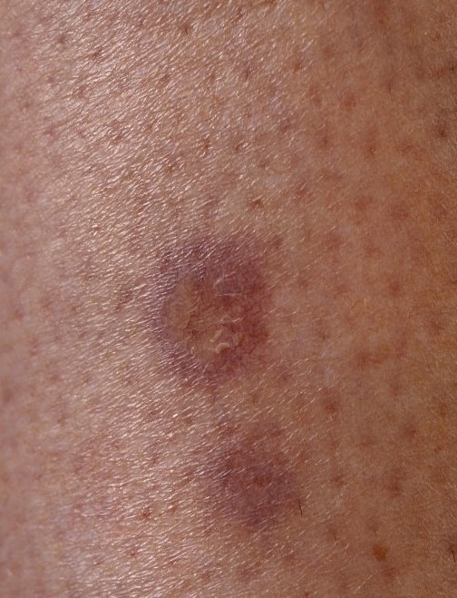 Therefore, blood glucose levels should always be measured. The most reliable way to do this is to go to the lab early in the morning, before breakfast (fasting glucose test). To be on the safe side, it's wise to have this checked again after one and two years (this can be done through your GP).HOW IS THE DIAGNOSIS MADE?The diagnosis is usually made visually. Based on the appearance of the lesion, the dermatologist can determine with high certainty that it is necrobiosis lipoidica. Sometimes there is doubt, as other skin conditions can resemble it. In that case, a skin biopsy can confirm the diagnosis. A small piece of skin is taken under local anesthesia and sent to the pathology laboratory. There, the typical inflammation with damage to the connective tissue fibers can be seen under a microscope. A skin condition that strongly resembles necrobiosis lipoidica is granuloma annulare, which also occurs on the lower legs but is more ring-shaped.CAN NECROBIOSIS LIPOIDICA CAUSE PROBLEMS?Usually not, aside from the cosmetic issue. Itching and pain can occur during the growth phase of the lesion. Sometimes the lesions become large, several dozen centimeters in diameter. In a small percentage of patients (approximately 10%), a wound, an ulcer, can spontaneously develop in a necrobiosis lipoidica lesion. This is because the inflammation associated with necrobiosis lipoidica affects the connective tissue fibers. These ulcers can be difficult to heal and leave a scar. Another rare problem, which only occurs in long-standing lesions (years old), is the development of a certain form of skin cancer ( squamous cell carcinoma ) in a necrobiosis lipoidica ulcer. These problems are mentioned here for completeness, but it is important to realize that this is very rare. In most patients, the problem remains limited to a small, brownish-yellow spot that causes no symptoms.
