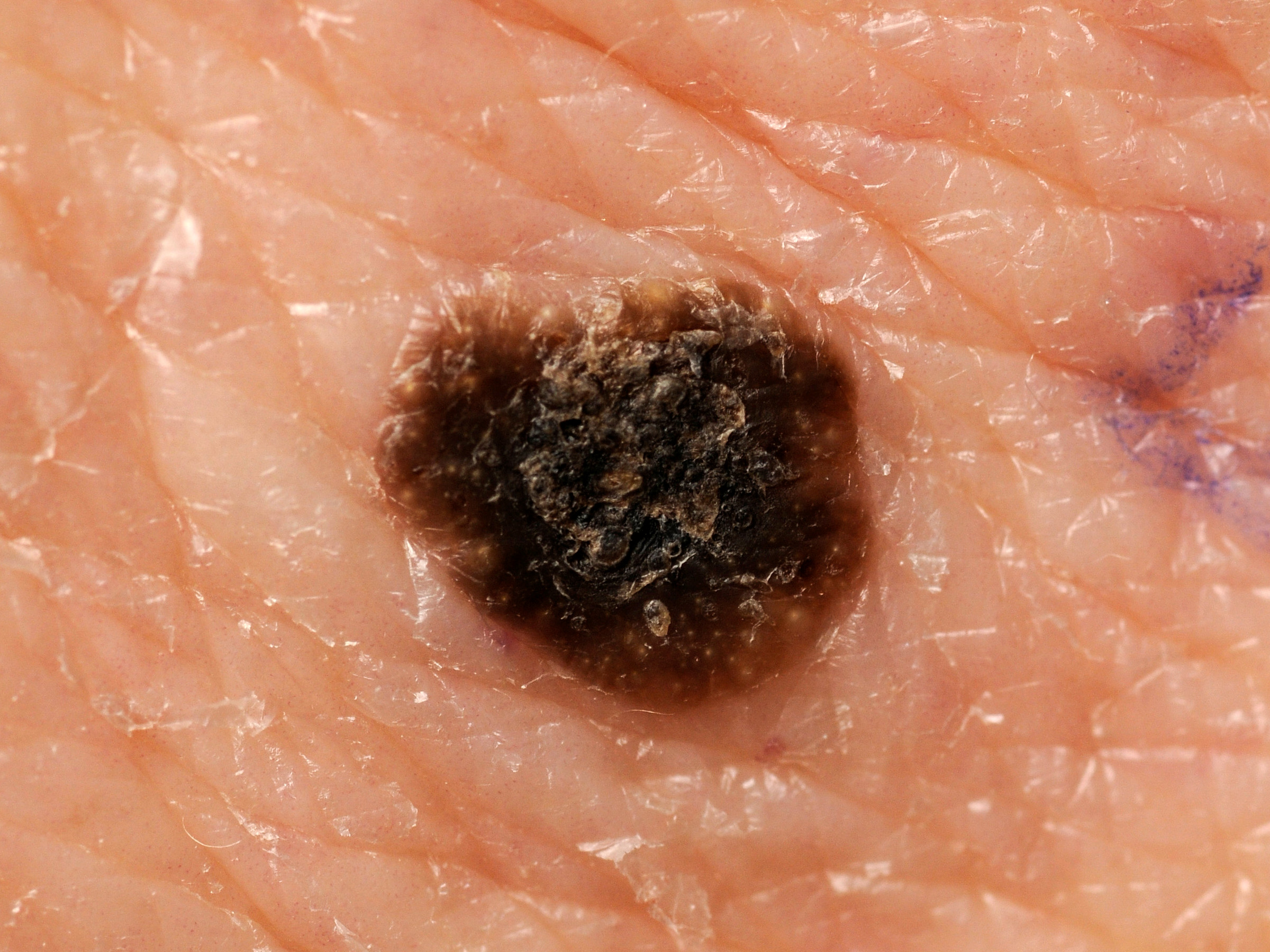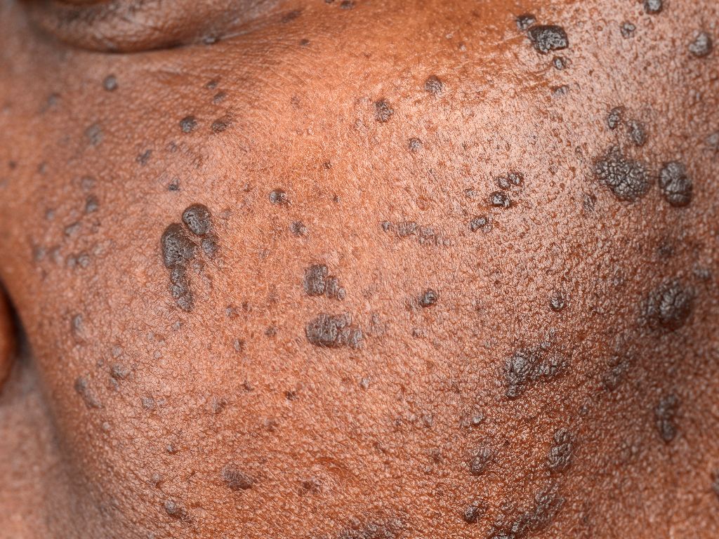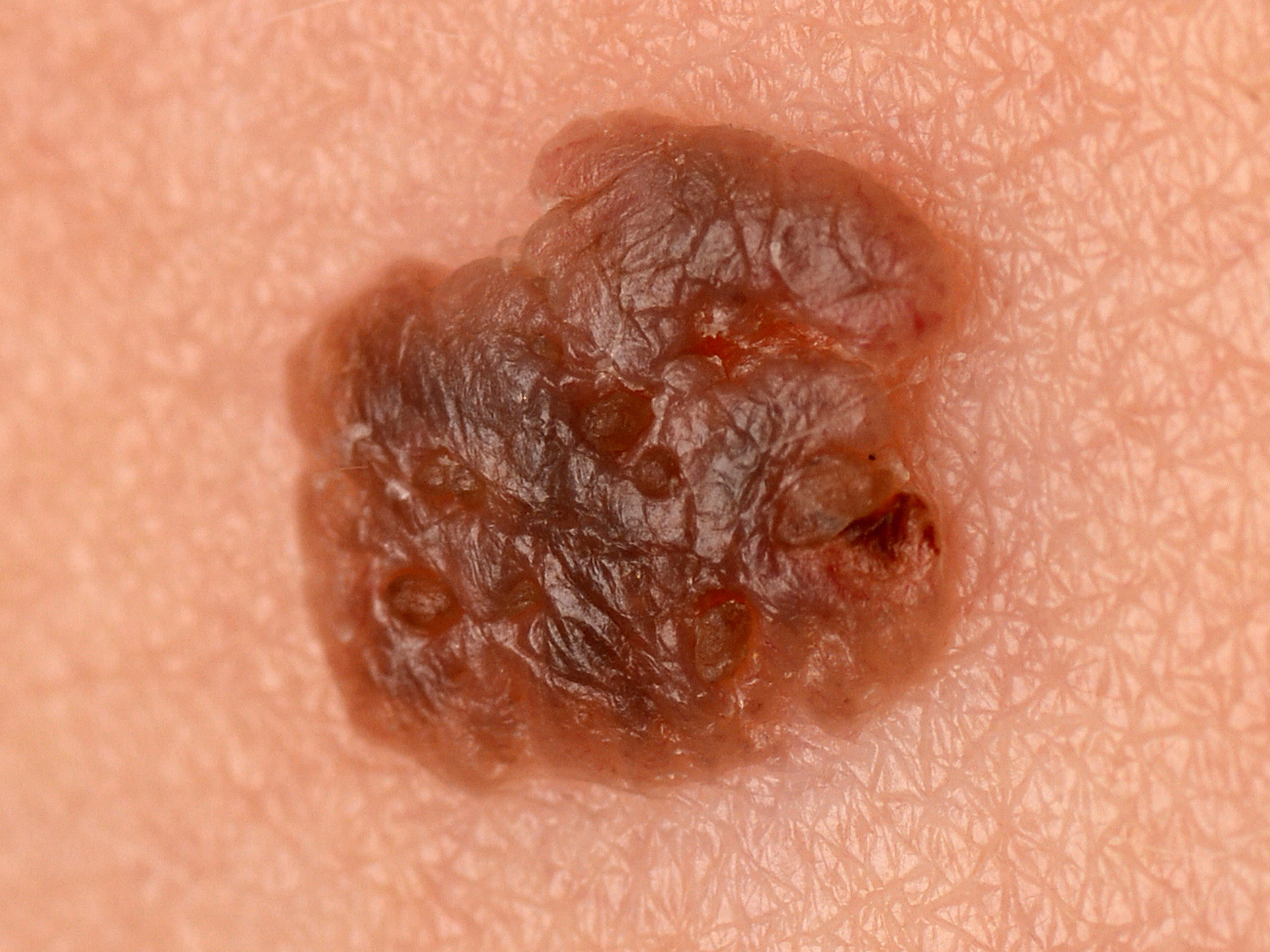 Variants of seborrheic keratosis:StuccokeratosesThese age-related warts are primarily found on the backs of the hands, forearms, lower legs, ankles, and the backs of the feet. They are multiple small, hard bumps that vary in color from white, grayish, to light brown.Dermatosis papulosa nigraThese are small (1-5 mm in size) brown to black spots, bumps or warts that mainly occur on the face and neck in patients with dark skin and in Asians.WHAT IS THE CAUSE?The cause of seborrheic keratosis remains a mystery. Other warts, such as plantar warts, are caused by a virus, the human papillomavirus (HPV). In the case of seborrheic keratosis, extensive research has been conducted to determine whether a viral infection is involved; this has not been found. Because some people experience more seborrheic keratosis and it can also run in families, it is possible that a hereditary factor plays a role. Currently, it is believed that over the years, a "mutation" develops in some skin cells, causing them to divide more rapidly and form a bump/wart.IS IT CONTAGIOUS?It's not contagious. No virus or bacteria have ever been found to be involved in the development of seborrheic keratosis, so it's not contagious.HOW IS THE DIAGNOSIS MADE?Seborrheic keratosis (senile keratosis) is generally easy to recognize based on its appearance. Further examination is almost never necessary. Occasionally, it's not entirely certain that it's a seborrheic keratosis. If there's any doubt, the wart or a section of it is removed under local anesthesia and sent to the laboratory for tissue analysis.HOW ARE AGE WARTS TREATED?Because these warts are benign, they don't need to be removed. Many people still want them removed for cosmetic reasons, or because they're in the way (they can grow very large), or because they're constantly scratched and then bleed.