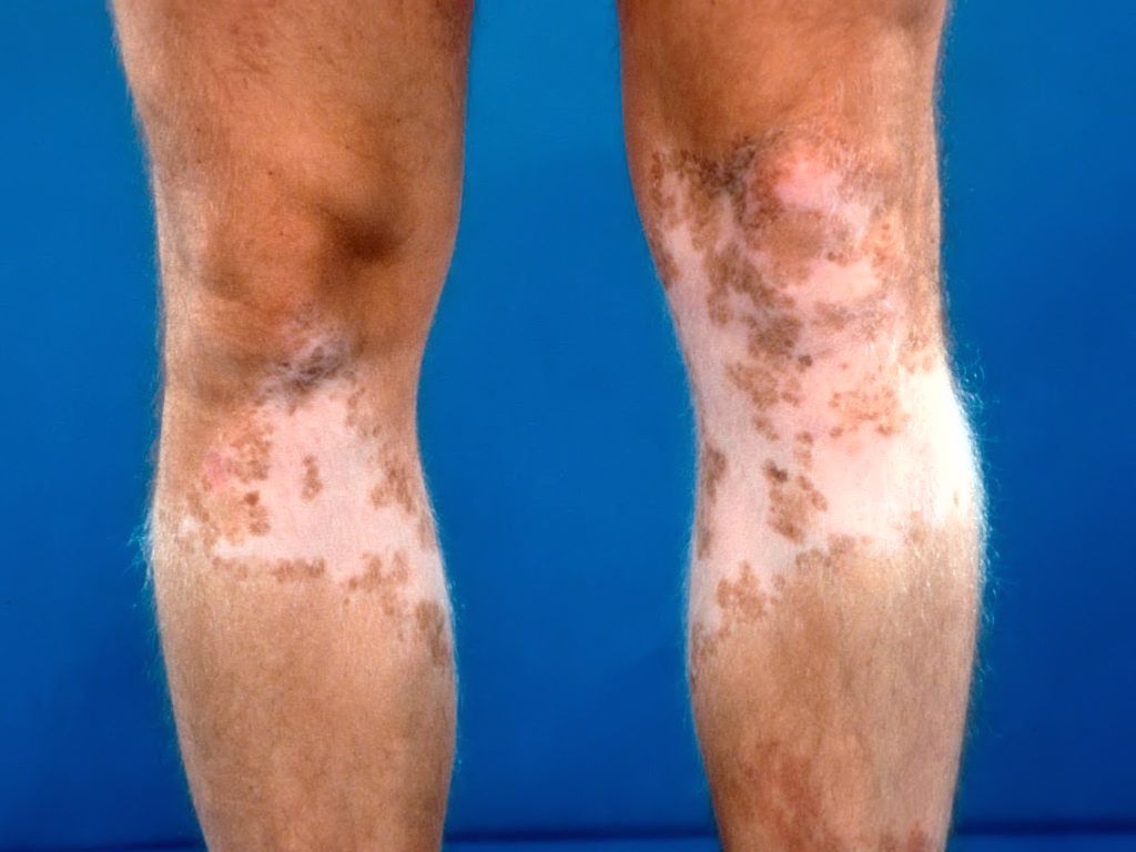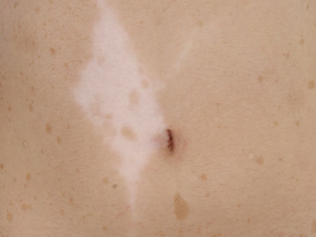 WHAT IS PIEBALDISM?Piebaldism is a skin condition characterized by white patches of varying size and shape on the body. The hair can also be completely white in patches (white locks). Piebaldism is a congenital skin condition; it's present from birth. It's also hereditary; it can run in families. The white patches in piebaldism resemble vitiligo, another skin condition with white patches. However, piebaldism is present from birth, while vitiligo develops later in life.HOW DOES PIEBALDISM OCCUR?People with piebaldism have a defect in a specific part of their genetic material (the C-KIT gene, located on chromosome 4q12). This genetic defect causes a protein that is responsible for the distribution of pigment cells throughout the body to be missing. Pigment production by pigment cells begins very early, even before birth. This is why the white patches are visible immediately after birth.WHAT DOES PIEBALDISM LOOK LIKE?Irregular white patches are present from birth. These patches are completely devoid of pigment. They are most common on the knees and elbows, chest, abdomen, and central forehead, and are often triangular in shape. The presence of a white lock of hair on the front of the head is very characteristic of piebaldism and sometimes even the only symptom. In fair skin tones, the patches may not be noticeable at birth. In addition to white patches, darker colored patches may also appear, which can be located either within the white patches or at the edges of them. The patches do not change shape, and no new white patches appear after birth.