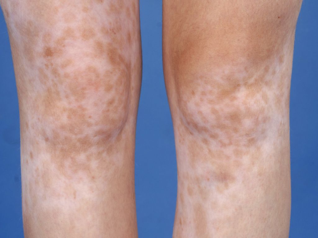 An alternative method is cell suspension transplantation, in which pigment cells are extracted from a piece of normal skin and, after processing, distributed in a liquid onto the white skin to be treated. This fluid contains pigment and skin cells and is replaced on the pre-treated (laser-treated) white area. This method is not yet registered for pigment disorders, but is currently being investigated at the SNIP (AMC Amsterdam) and the University Hospital Ghent (Belgium).WHAT ARE THE OUTLOOK?Unlike vitiligo, the white patches will not increase in number or size over the years. Piebaldism does not affect general health. Despite the absence of pigment in the white patches, there is no increased risk of developing skin cancer or melanoma compared to people without piebaldism. The white patches are, however, more susceptible to sunburn because they are not protected by pigment. Piebaldism can be part of a rare syndrome called Waardenburg syndrome. Patients with this syndrome have piebaldism combined with two different colored irises in the eyes, ear abnormalities (deafness), and reduced intellectual abilities.WHAT CAN YOU STILL DO YOURSELF?Camouflaging depigmented areas with skin-colored makeup can sometimes make them virtually invisible as long as the camouflage is in place. This can be especially effective for the face. Skin therapists can inform you about this option. |