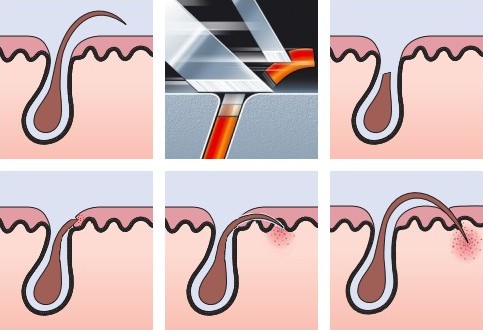 The cause of ingrown hairs: Modern razors have two blades in quick succession.