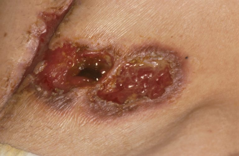If there is an underlying disease, it usually also causes symptoms such as abdominal pain, diarrhea, blood in the stool, joint pain, etc. It is therefore important to carefully determine whether you have or have had any of these symptoms. In addition, underlying internal diseases can be detected by performing blood tests or other further investigations.HOW IS PYODERMA GANGRENOSUM TREATED?PrednisoneIn the case of serious wounds or rapidly spreading wounds, it is necessary to stop the disease immediately to prevent further damage. This is usually done with prednisone. Prednisone works quickly; within two days, the disease process can be seen to be halted. Sometimes, a high dose is necessary. Once the disease is under control, the daily dose of prednisone is gradually reduced to the lowest effective dose.CyclosporineBecause long-term use of prednisone can cause side effects, it's recommended to switch to other medications that also have anti-inflammatory properties. One example is ciclosporin. Ciclosporin doesn't work as quickly as prednisone and can also have side effects, but if well tolerated, it's a medication that can be used for months or years without any problems.Sulfasalazine and mesalazineThese are originally antibiotics, but they also have an inhibitory effect on all kinds of inflammation. These agents are also used for inflammatory bowel disease and sometimes for rheumatoid conditions. They also appear effective in a large proportion of pyoderma gangrenosum patients. The main side effects are gastrointestinal discomfort and nausea, especially initially.TNF-alpha blockersTNF-alpha is a chemical (cytokine) that plays a key role in all kinds of inflammation in the body and attracts white blood cells. By inhibiting TNF-alpha, inflammation can be nipped in the bud. Examples of TNF-alpha-inhibiting drugs include Remicade and Remsima (infliximab), Enbrel (etanercept), and Humira (adalimumab). Remicade has been used for years for inflammatory bowel disease and has also proven to be very effective for pyoderma gangrenosum. These new agents are highly effective and work quickly. The disadvantage is that they can only be administered intravenously or as an injection, and they are very expensive.Local treatmentFor small wounds that do not spread quickly, local anti-inflammatory creams or ointments can be used. These can be corticosteroid creams, possibly alternating with antibacterial ointments, or hormone-free anti-inflammatory ointments such as Protopic (tacrolimus) ointment or Elidel (pimecrolimus) cream.Local wound careGood wound care is also important. There are many different products on the market for wound care. These can be simple moist gauze pads, possibly soaked in an antibacterial solution, or modern wound dressings that only need to be changed once a day, such as hydrogels. Antibiotics are not effective for pyoderma gangrenosum, but sometimes wounds are so contaminated with bacteria that it is wise to use them. For wounds with dead tissue, it is common to surgically remove it. However, with pyoderma gangrenosum, this can be counterproductive: cutting only makes the wound worse. Surgical intervention is not permitted until the disease has been controlled with medication. This also applies to skin grafts. Treatment with a vacuum pump helps some patients.WHAT ARE THE OUTLOOK?Once anti-inflammatory treatment has begun, healing begins. Eventually, the wounds will heal completely. The length of time this takes and the appearance of the scars depend on their size and depth. Once the wounds are completely closed, treatment can be gradually reduced and eventually stopped altogether. After that, the course of the disease varies. Some patients experience this condition only once, following a surgical procedure or skin injury, and then never again. It's also possible for pyoderma gangrenosum ulcers to reappear with each subsequent procedure or minor skin injury. However, because the patient is now aware of the condition, it will never escalate, as it is recognized and treated promptly. Preventative prednisone can be administered for planned procedures if necessary. It's important to inform the surgeon of your history of pyoderma gangrenosum during planned procedures, and that this can cause problems during surgery.