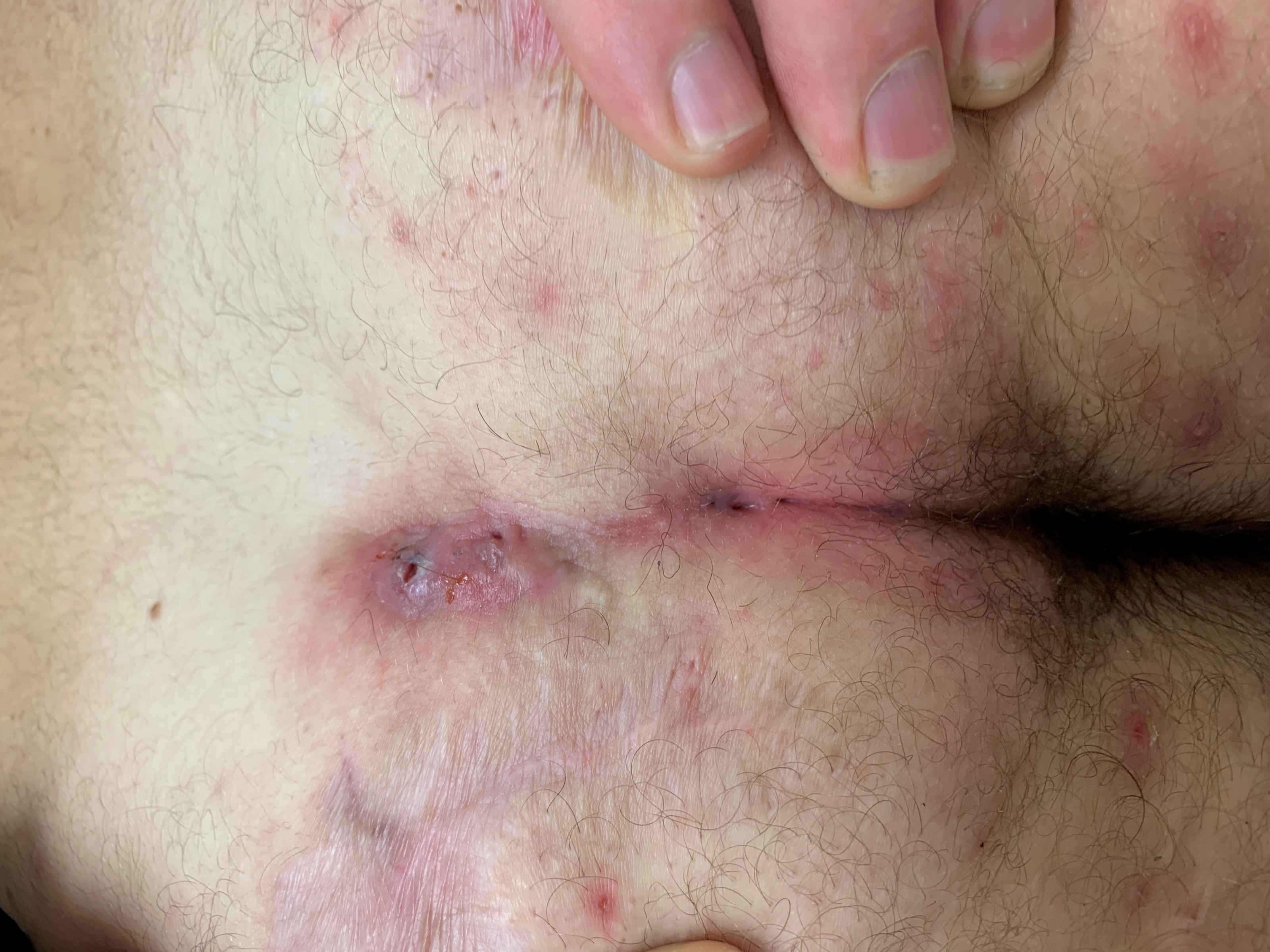 ![Sinus pilonidalis (click on photo to enlarge) [source: Jonathanlund - Wikimedia - Creative Commons License 4.0] Pilonidal sinus](../../images/sinus-pilonidalis-4z.jpg) |