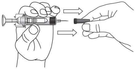 Pull the needle cap straight off and throw it away. Do not touch the plunger.