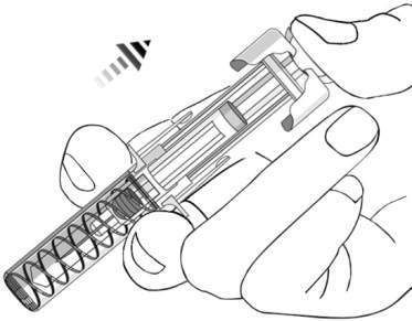 Inject the entire contents by pushing the plunger until the end of the plunger is completely between the wings of the needle protection mechanism (see figure 5).