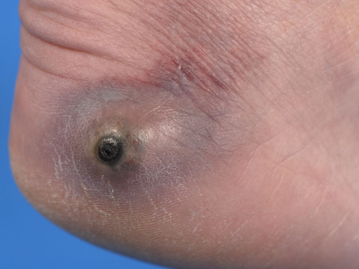These bumps can become severely inflamed with bacteria. An abscess can develop, which can ooze pus. The bacteria that can grow there (including staphylococci and streptococci) can cause nasty local infections that spread to the foot and lower leg. Tetanus can also develop in people who are not vaccinated against it. Furthermore, a scar can remain afterward.