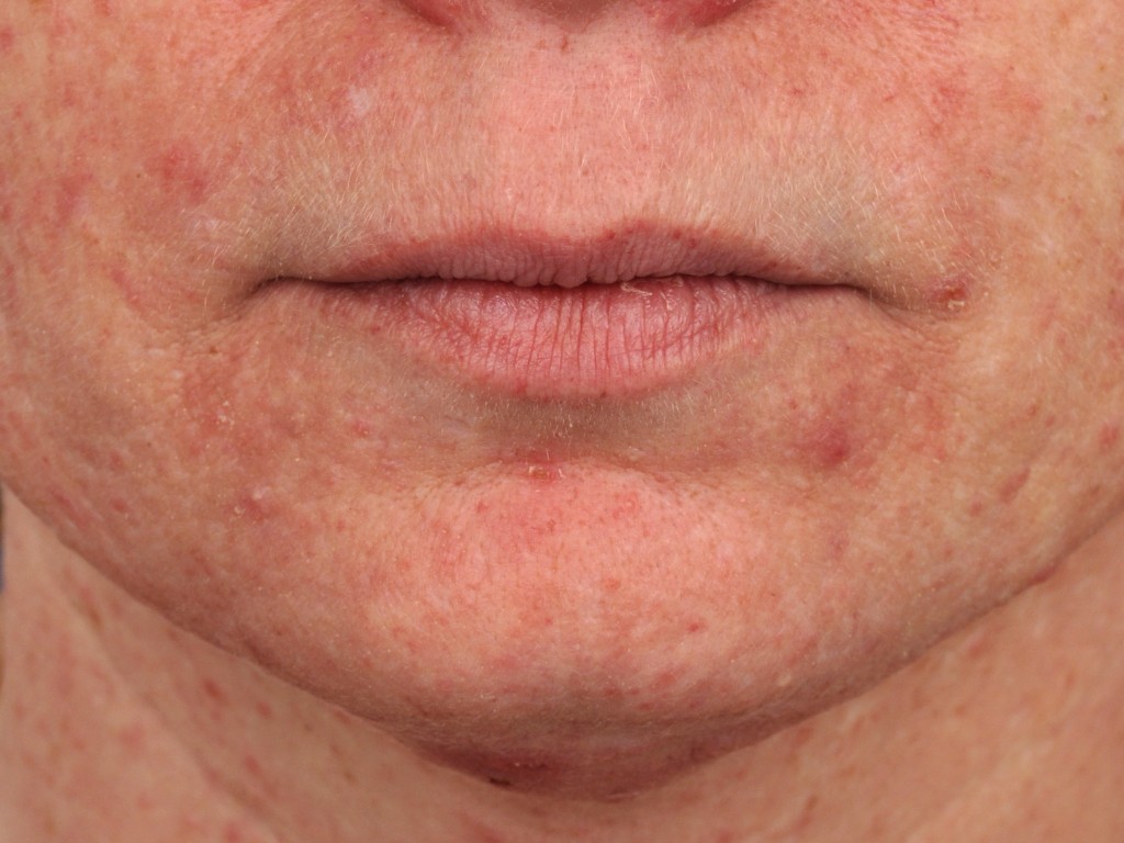 met weinig comedonen. Gezicht, peri-orale regio, kin en kaaklijn. Vrouwen met