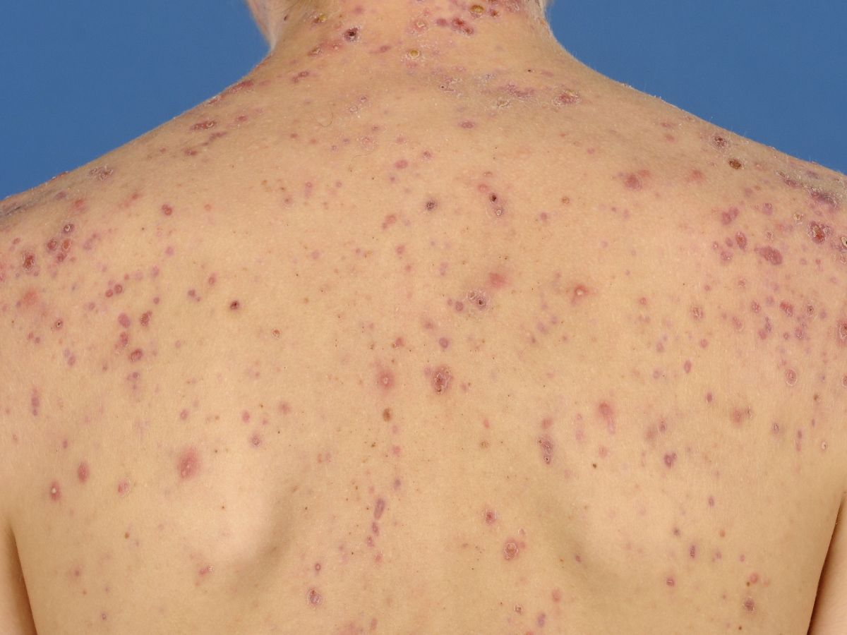 Het komt vooral voor op de rug en borst, en in het gelaat.