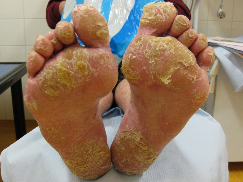 voeten) en tevens een fijne psoriatiforme schilfering vingers en