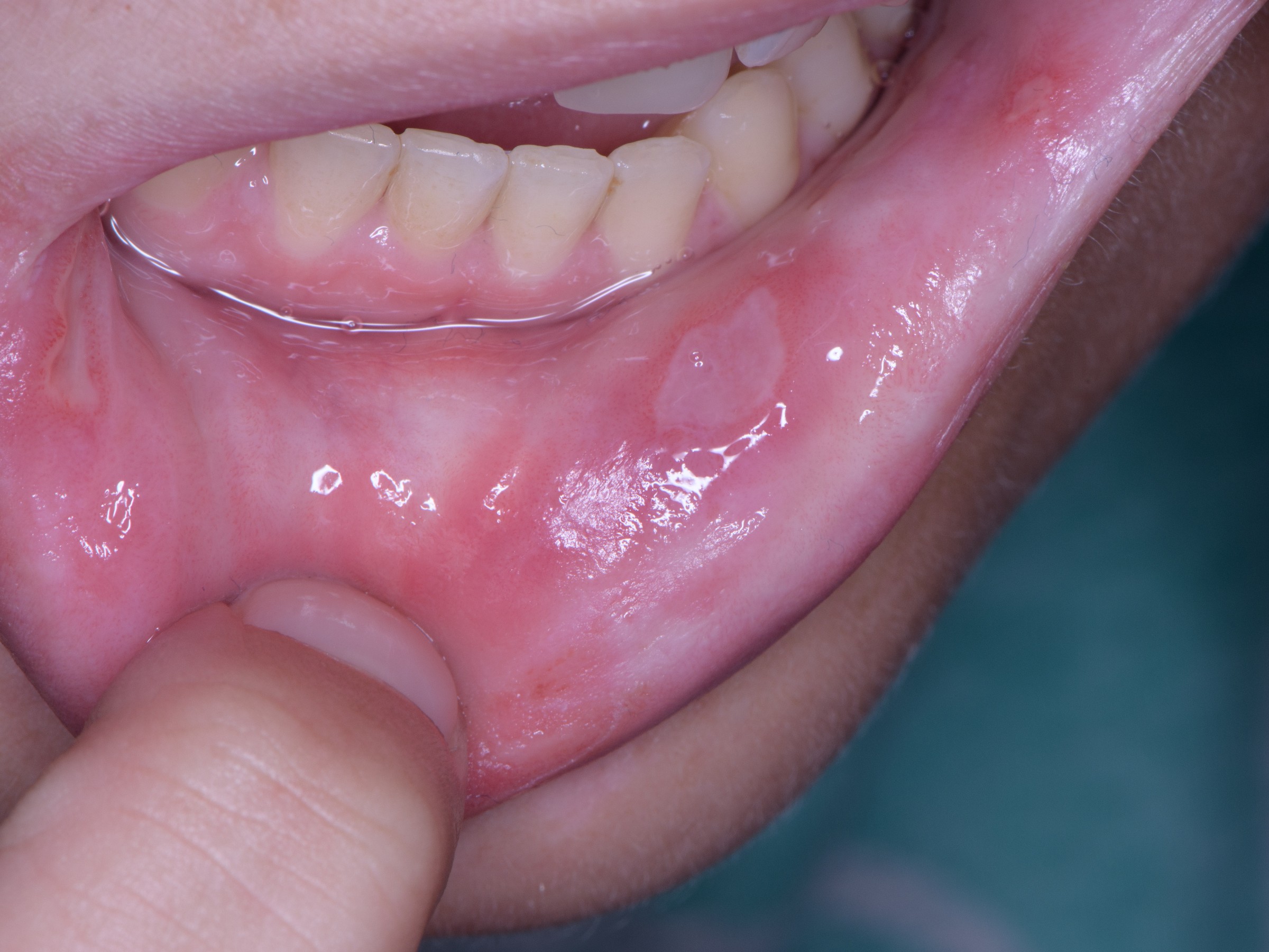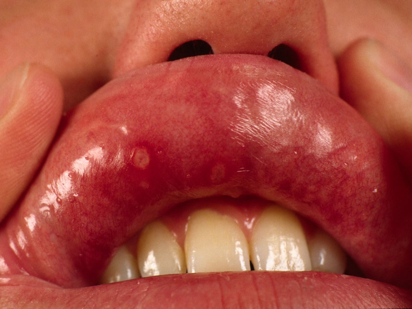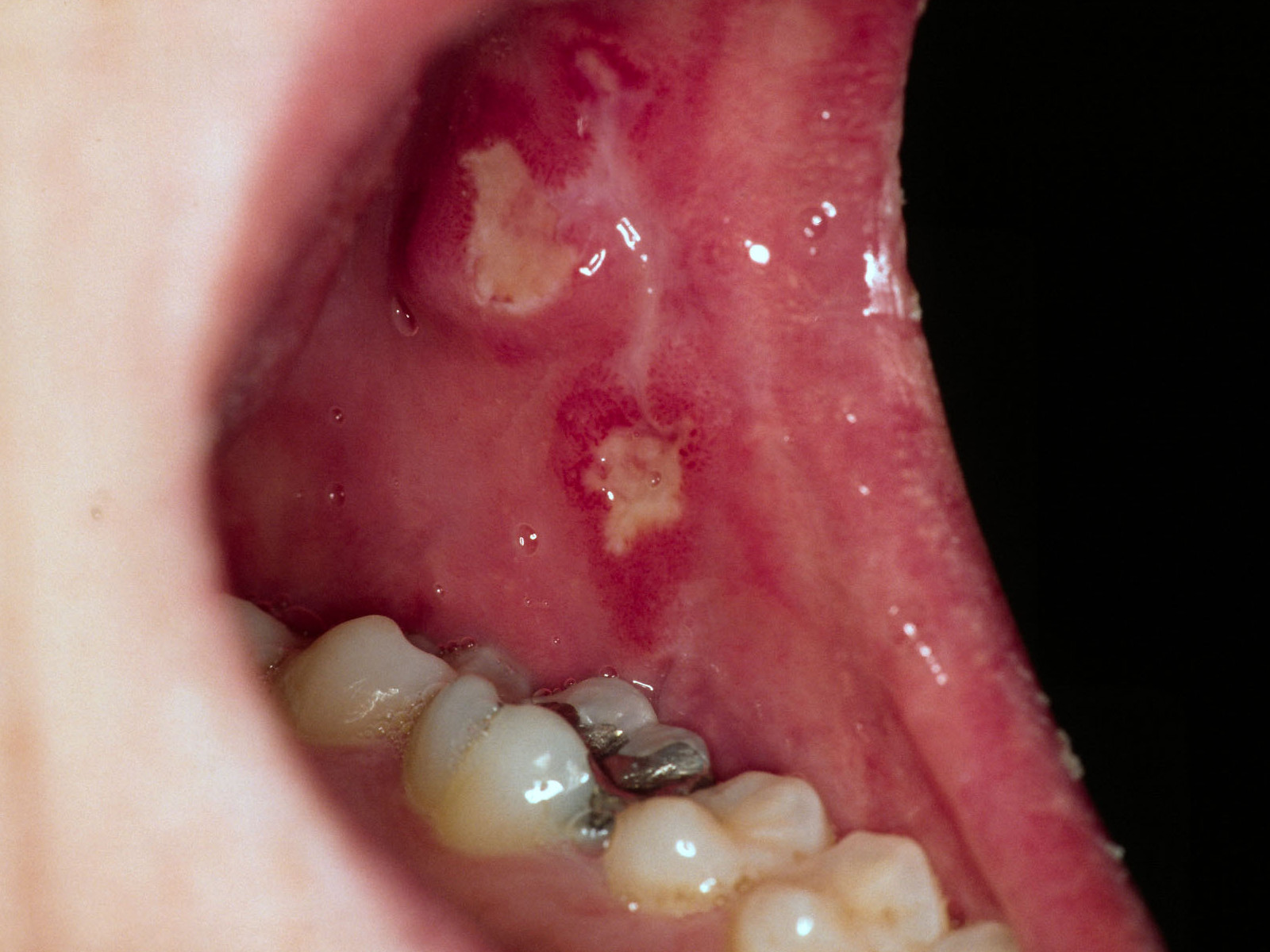 Meestal gaat het om 1 of meerdere oppervlakkige, pijnlijke ulcera op het mondslijmvlies,