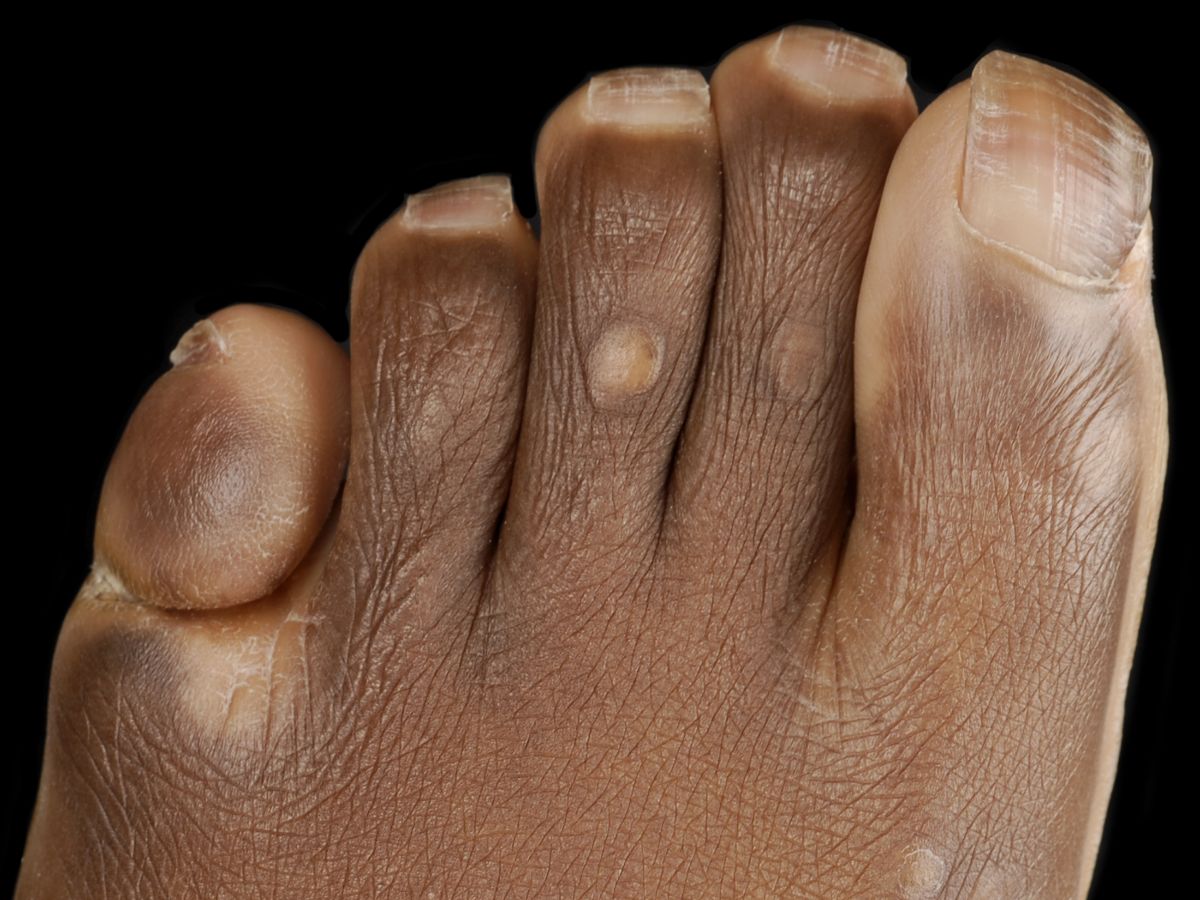 wordt en binnen enkele maanden rondom kan zitten. De teen zwelt op door een