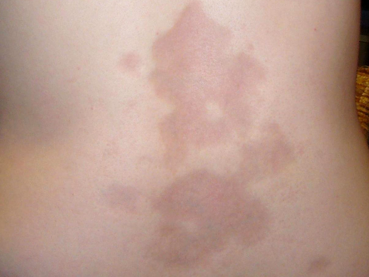 De deukjes zitten vooral op handen en voeten, rond de ellebogen en in het gelaat.