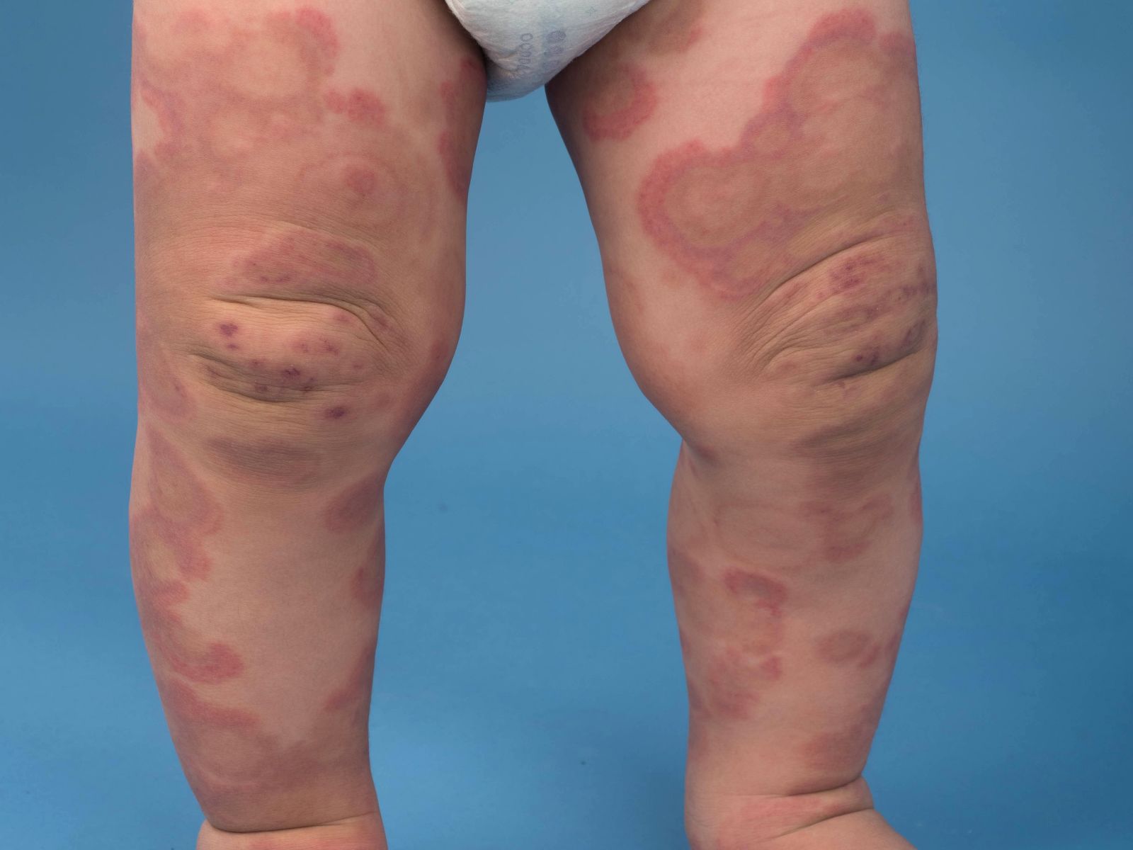 avec oedema, en frühinfantile postinfectiöse Kokarden-Purpura.