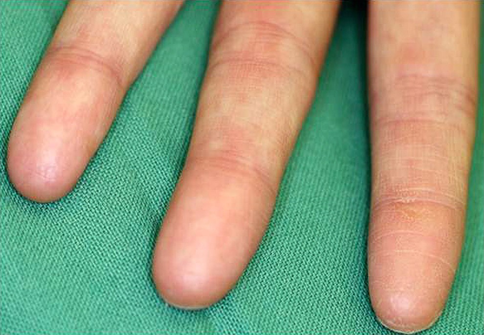 in de huid. De patiënten met deze mutatie hadden ook een verminderde palmaire
