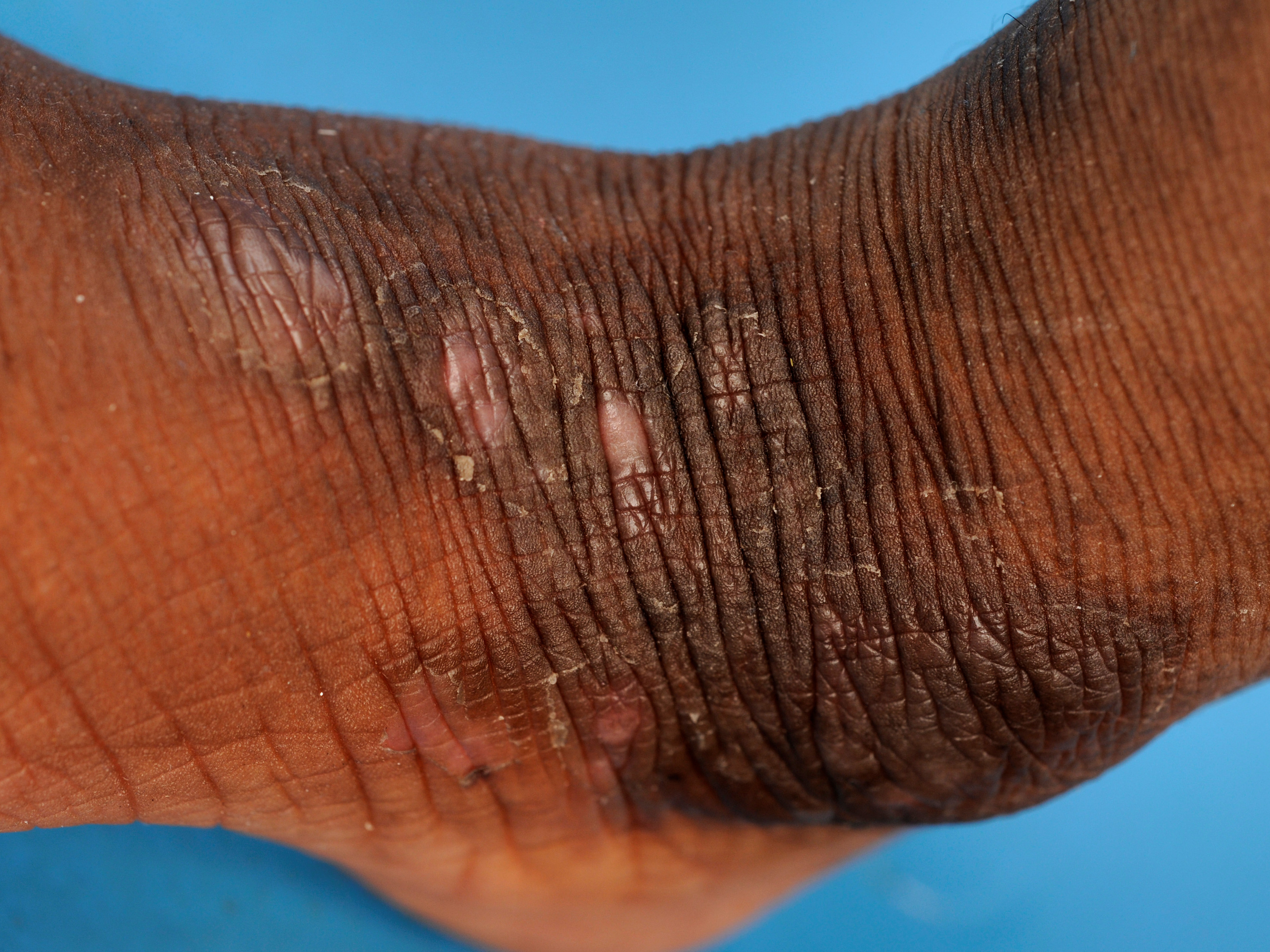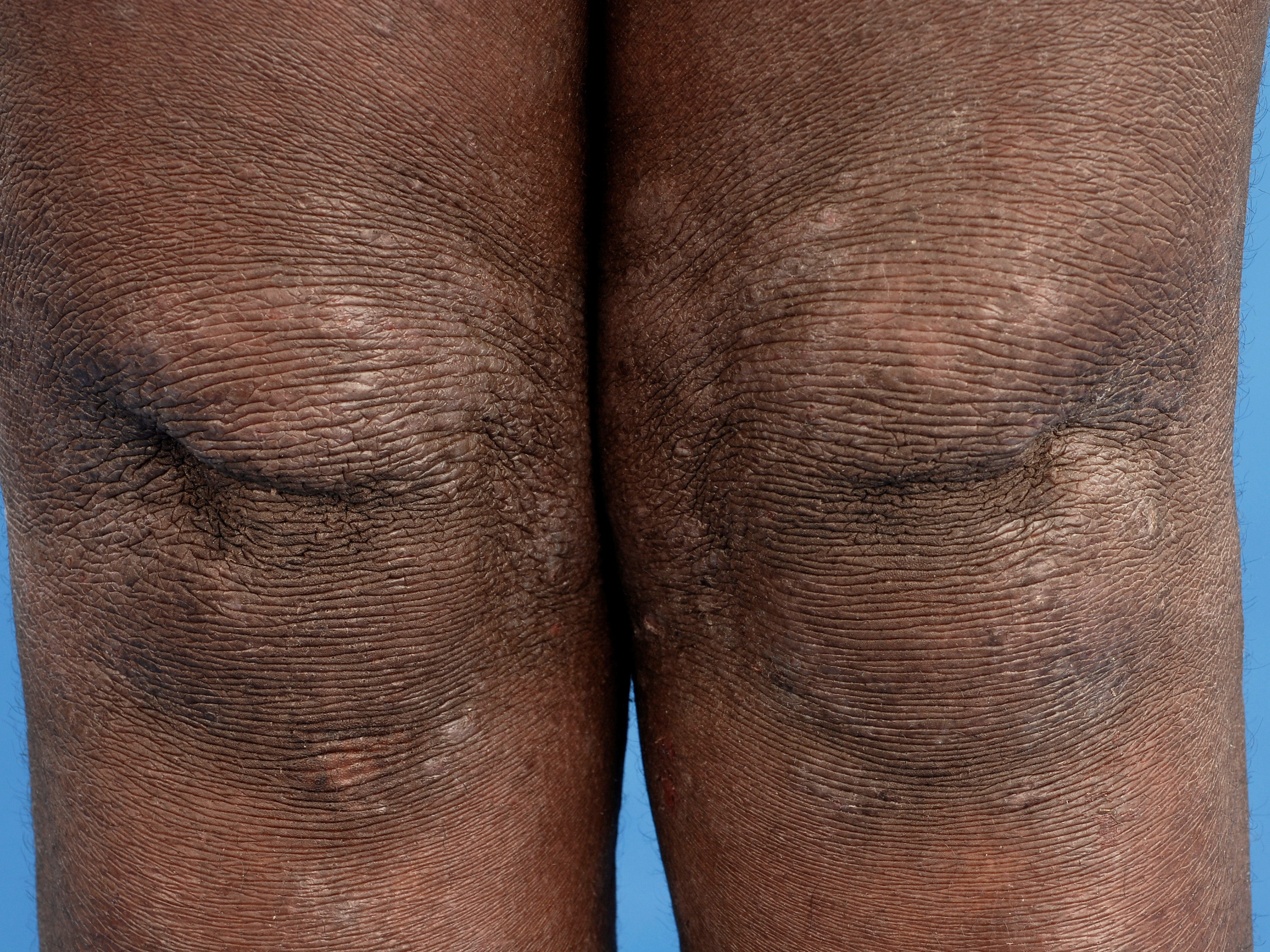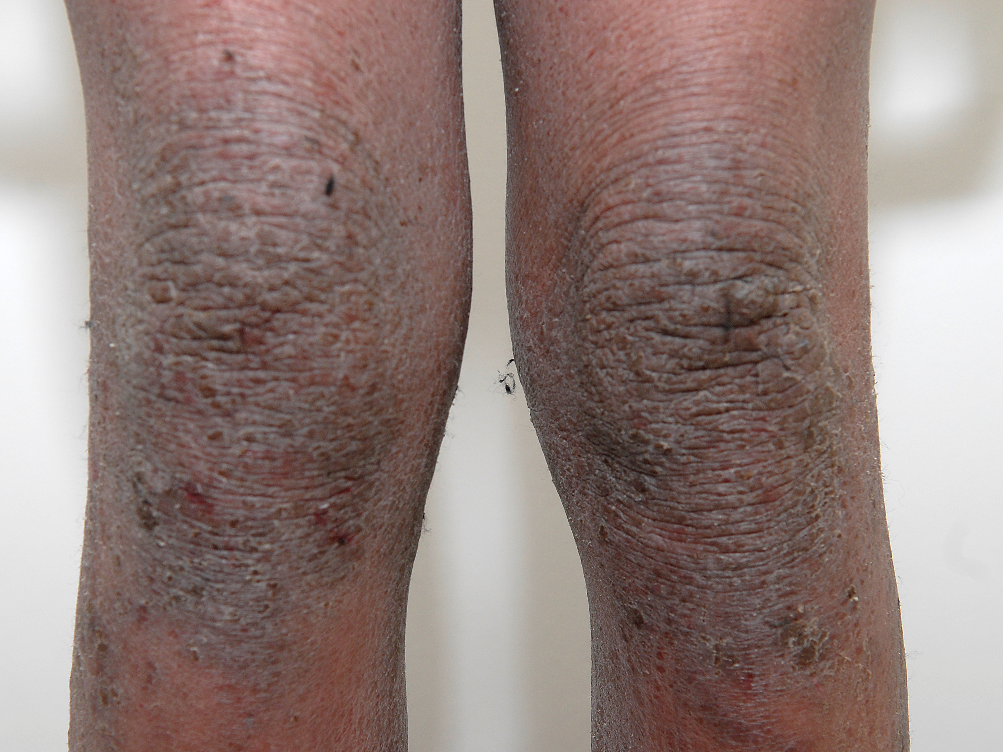 Xerosis bij donkere huid is ook meteen cosmetisch storend zichtbaar als een