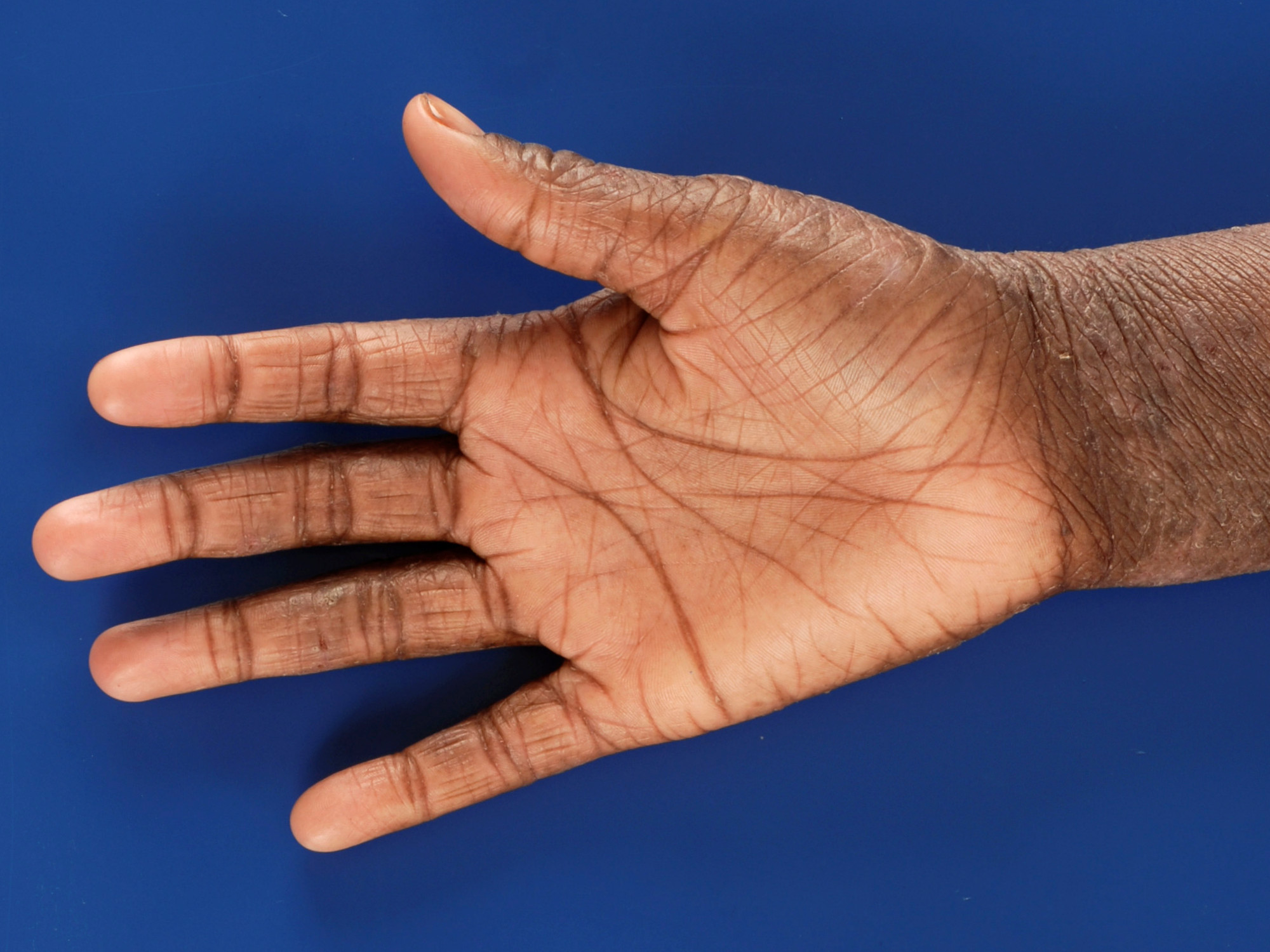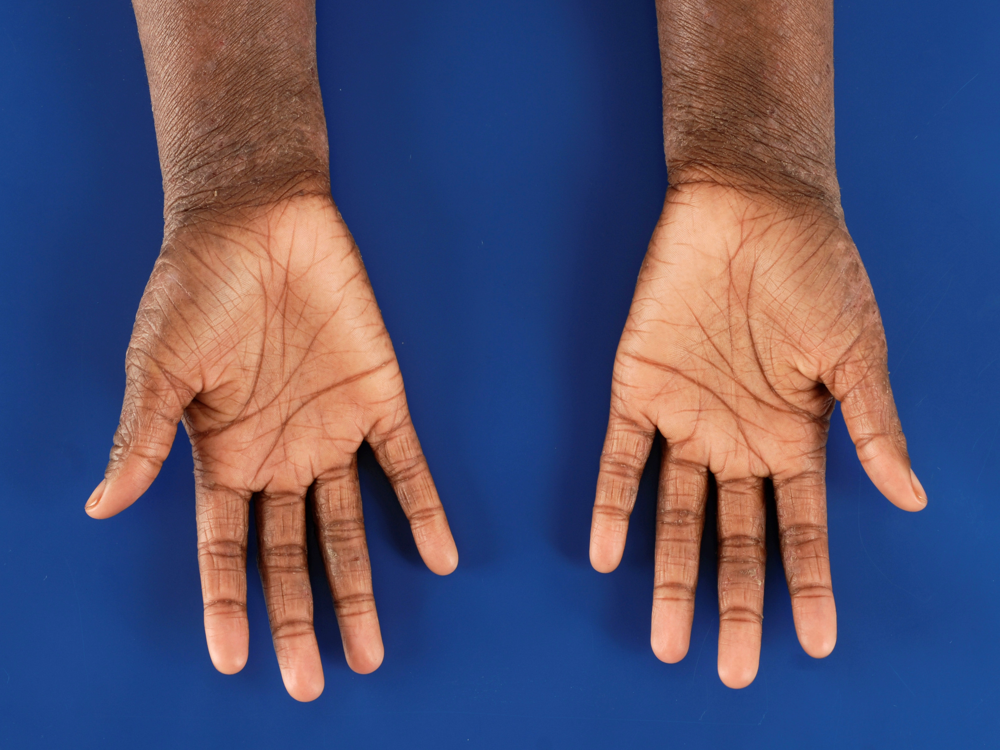 vaker droge huid - hyperlineariteit van de handpalmen - Dennie-Morgan