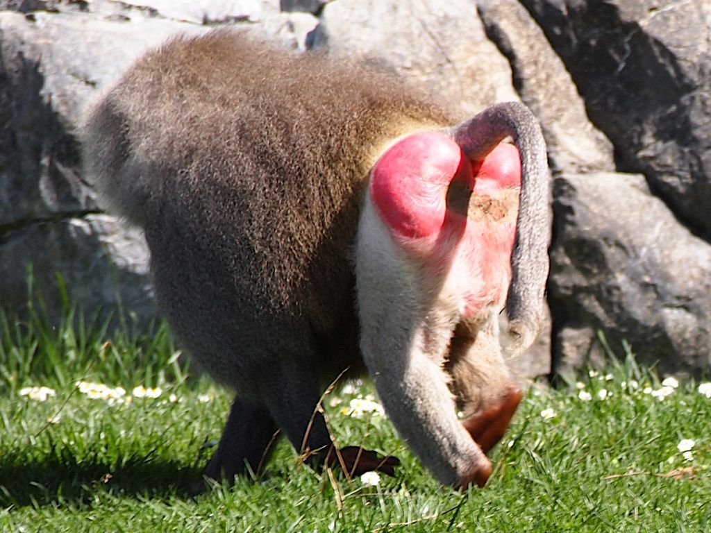 van de billen (baboon = baviaan) en de plooien (oksels en liezen). Er is geen