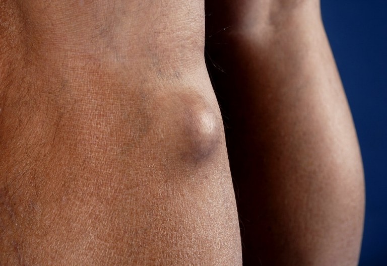 kan wel een pijnlijke zwelling ontstaan hoog in de kuit. Kan in zeldzame gevallen