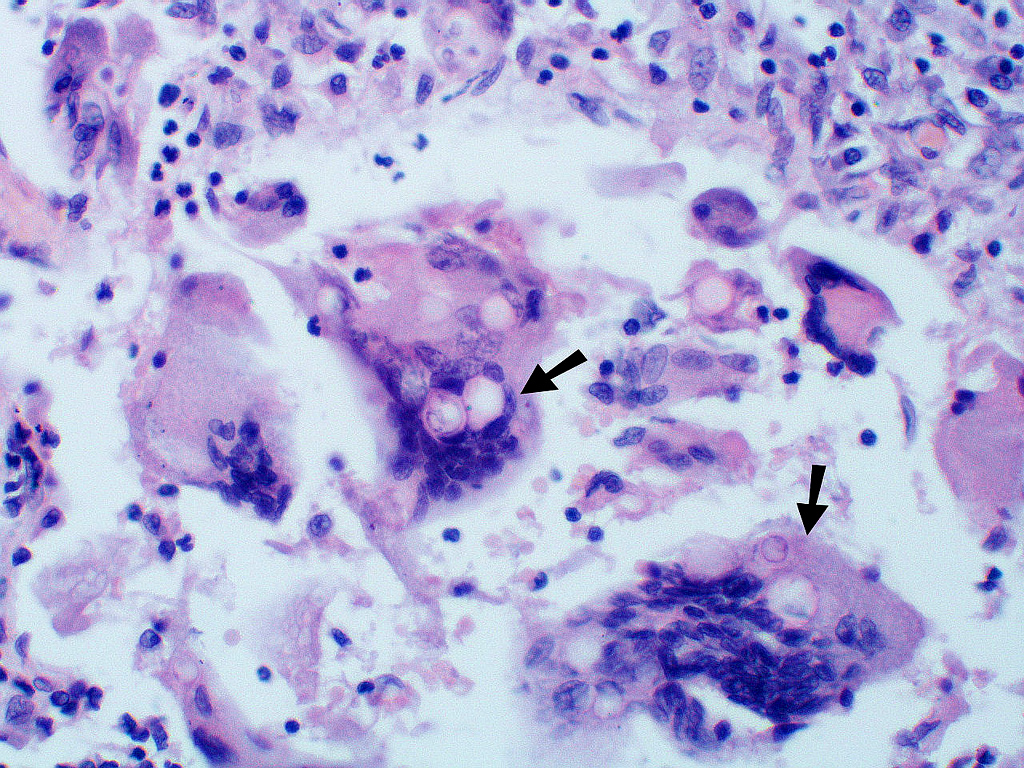 ![Paracoccidioides brasiliensis (click on photo to enlarge) [source: CDC - Public Domain Image] Paracoccidioides brasiliensis](../../../images/figures/paracoccidiomycosis-1z.jpg) |