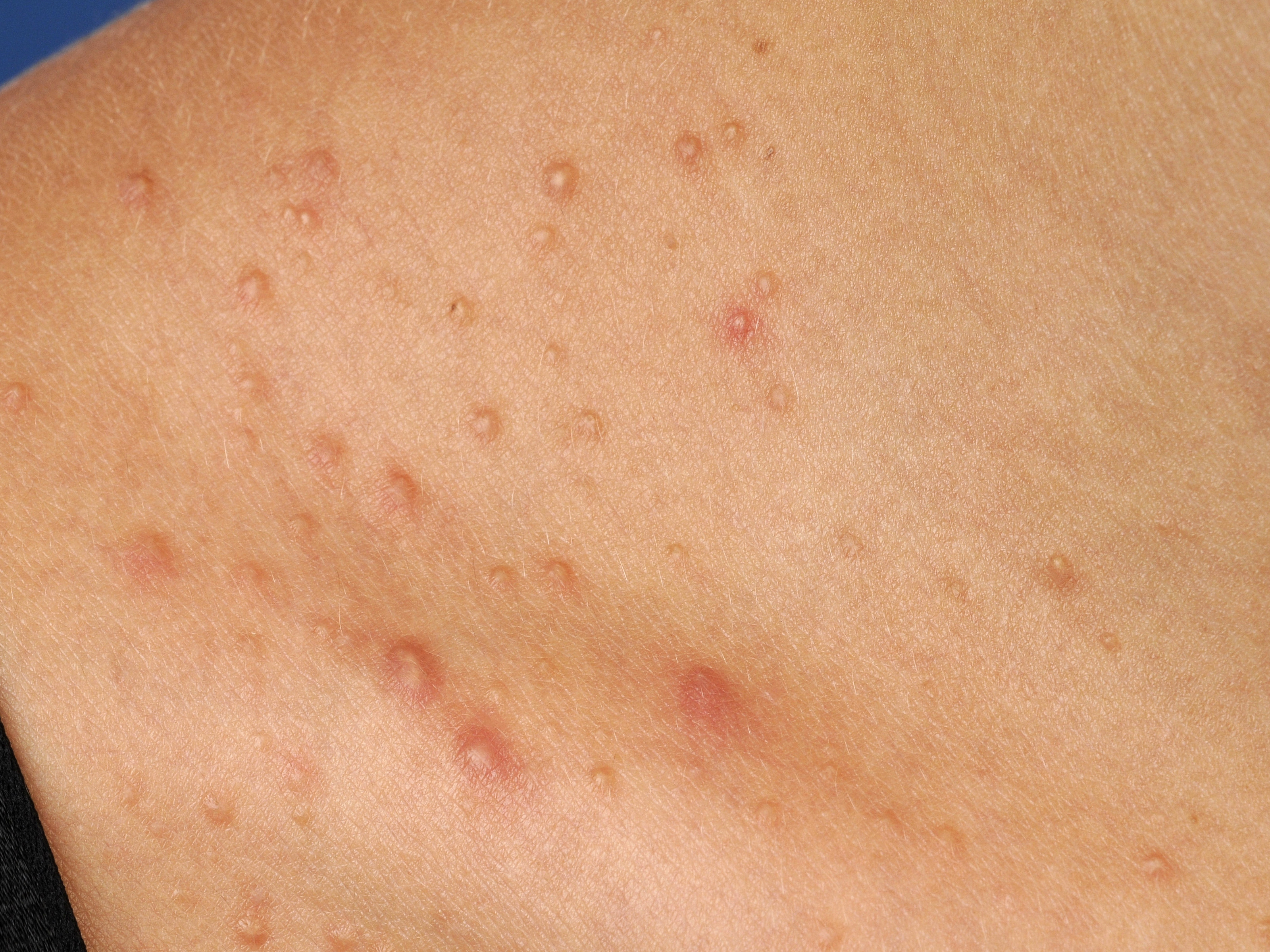 kan overal op de behaarde huid voorkomen, de voorkeurslokalisaties zijn het