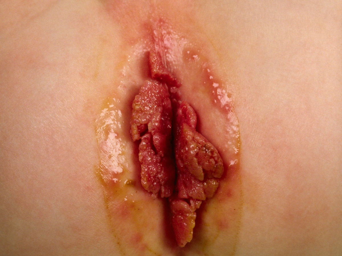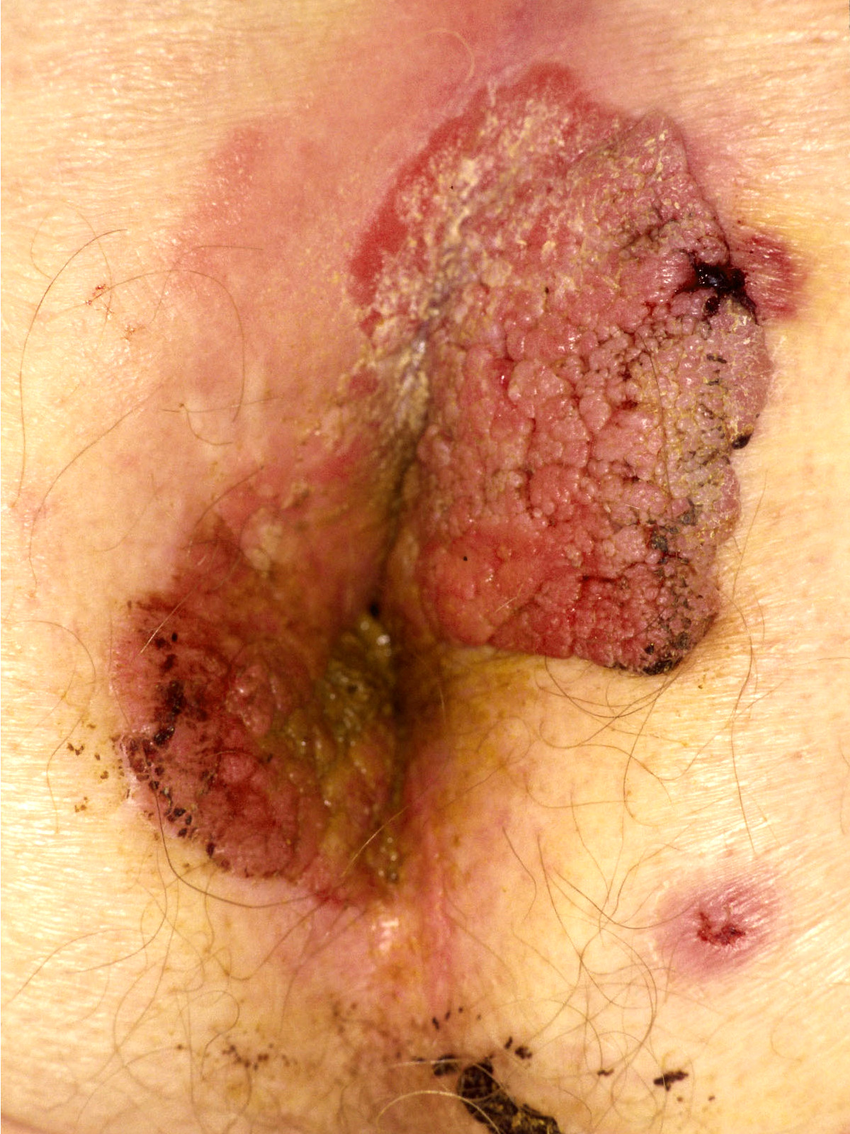 gebied volledig worden overgroeid met een condylomateuze massa.