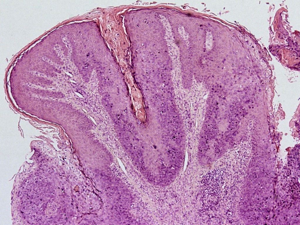 Klinisch beeld: Langzaam groeiende verruceuze afwijking