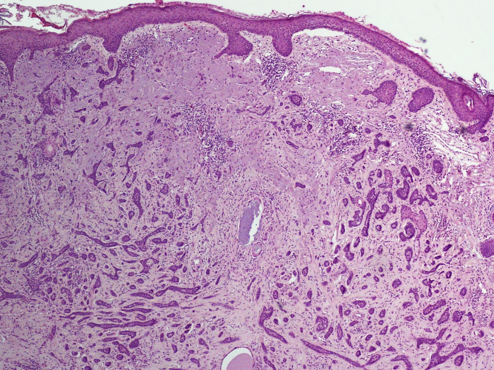 sprieterig basaalcelcarcinoom, kleine strengetjes van basaloïde