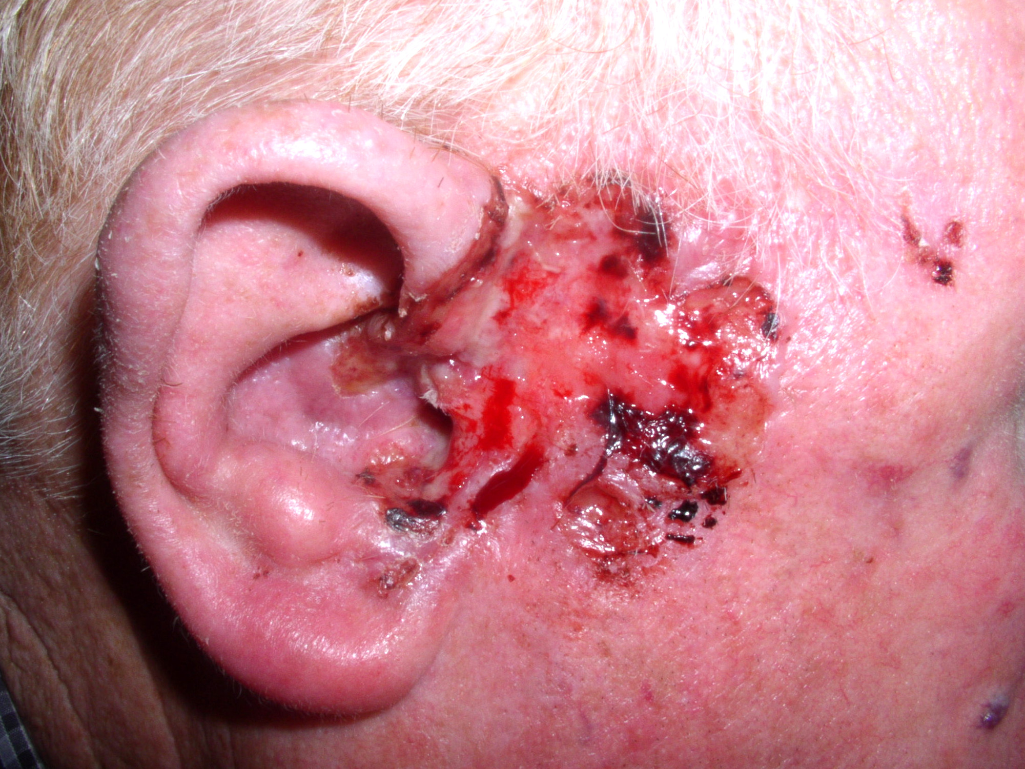 grote BCC's waarbij er geen verschuifbare huid meer over is, of bij het