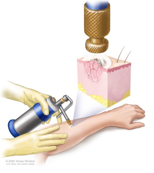 (Efudix) Het cytostaticum (5-FU) werkt ook selectief en kan worden
