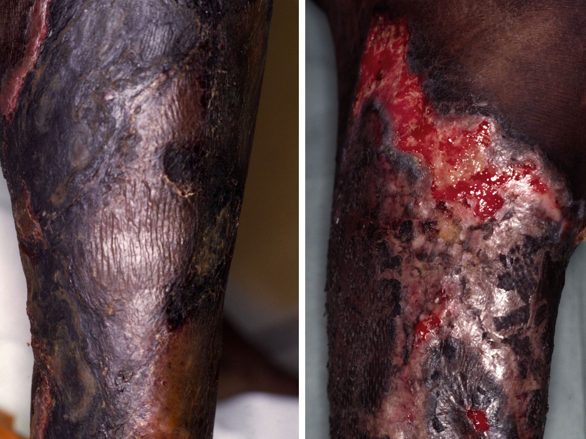 met necrose. Acrale en distale vormen (vingers, tenen, penis of onder benen