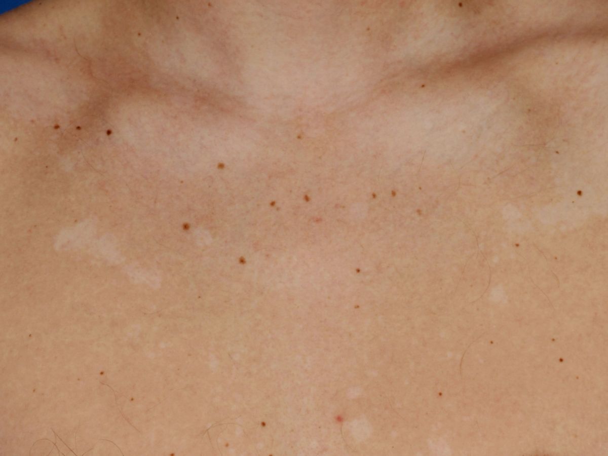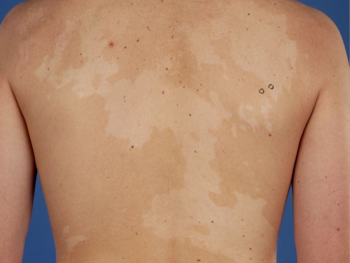 Hypopigmentatie in een asymmetrisch patroon bij een