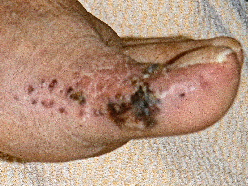 acrale cyanose, ziekte van Raynaud, pijnlijke necrotische ulcera, gangreen,