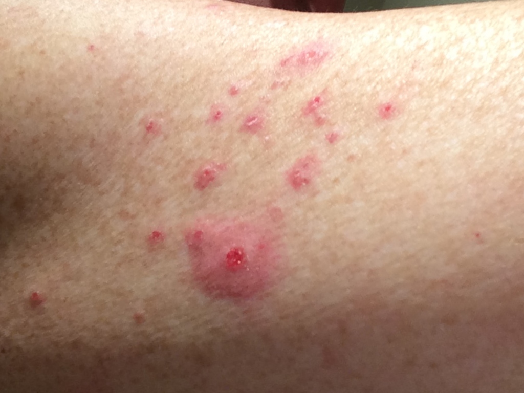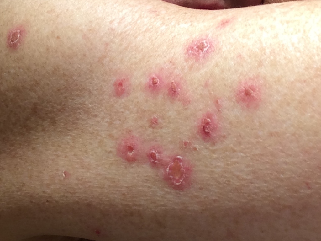 kunnen vesikels en pustels ontstaan. Door krabben ook excoriaties en