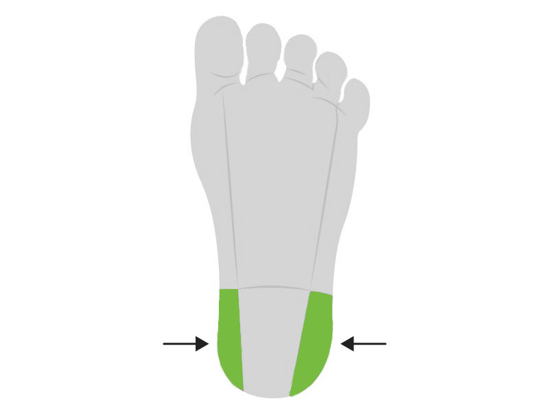 is gezet. Als de hielprik goed is uitgevoerd is dat lateraal op de voetzool