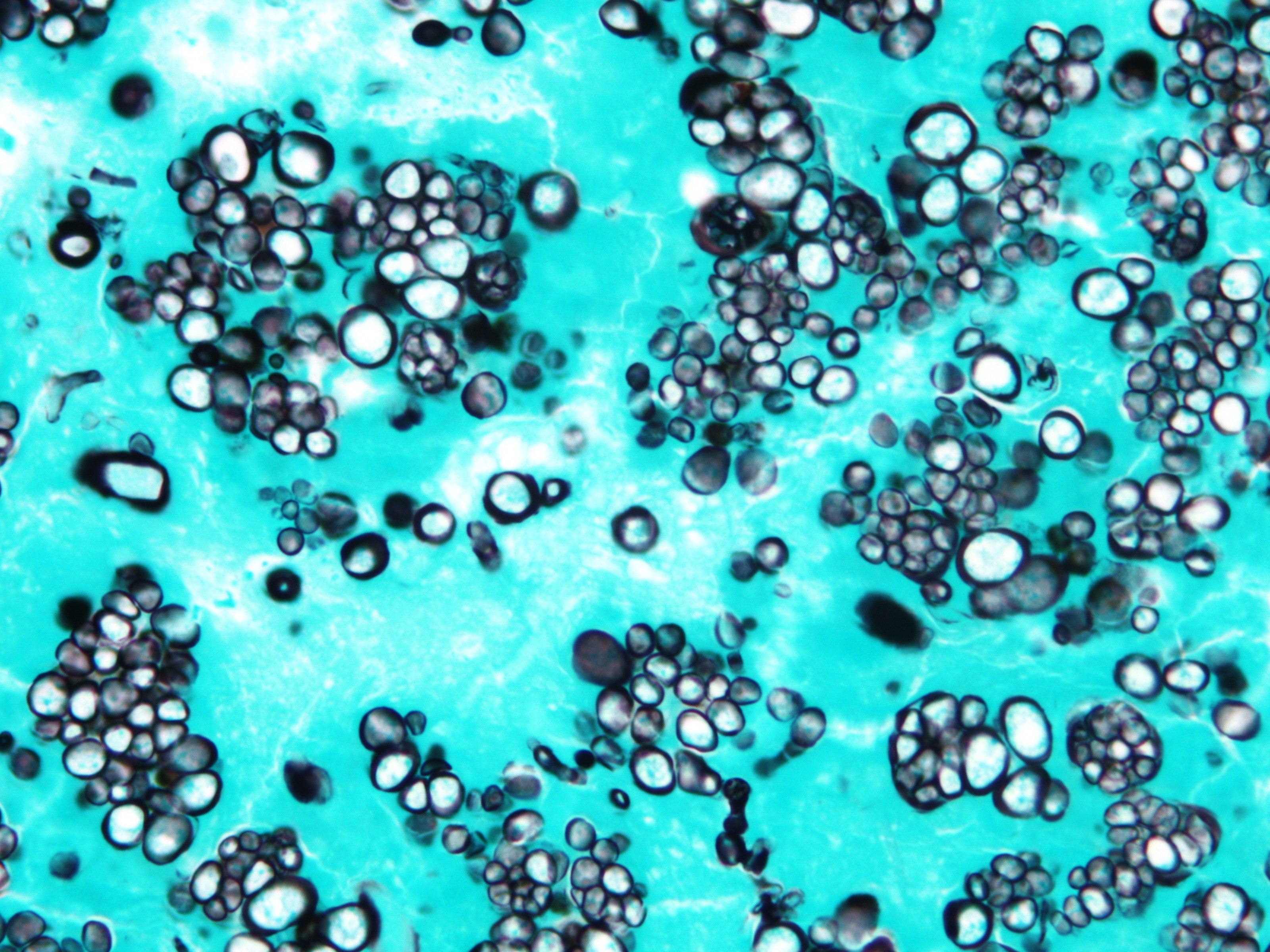 spherules die talloze endospores bevatten, die de mens kunnen infecteren. De
