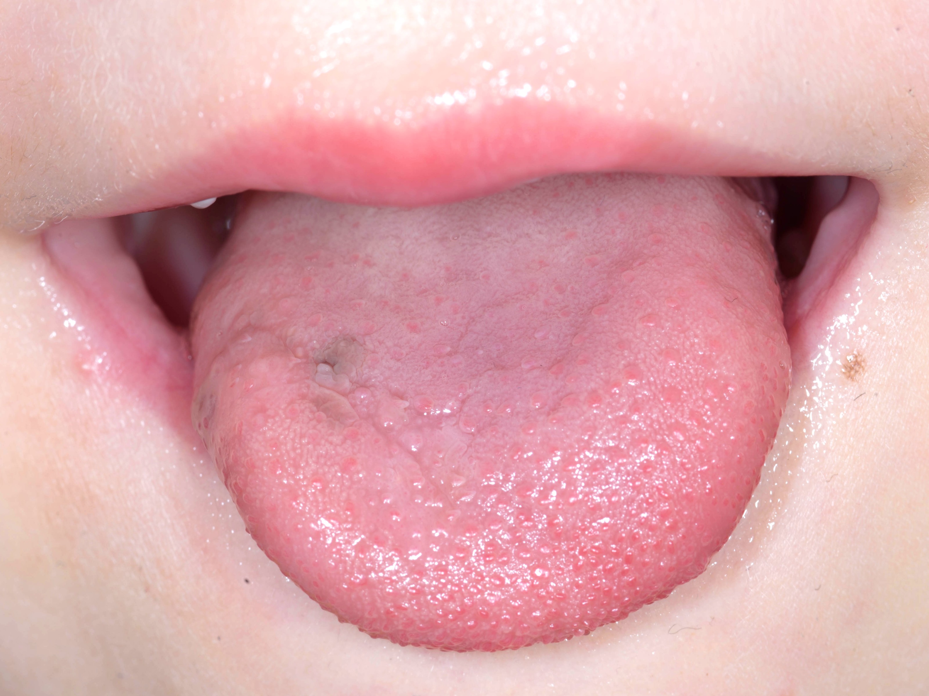 bij kinderen zijn extreem zeldzaam en nog niet gerapporteerd op de tong bij