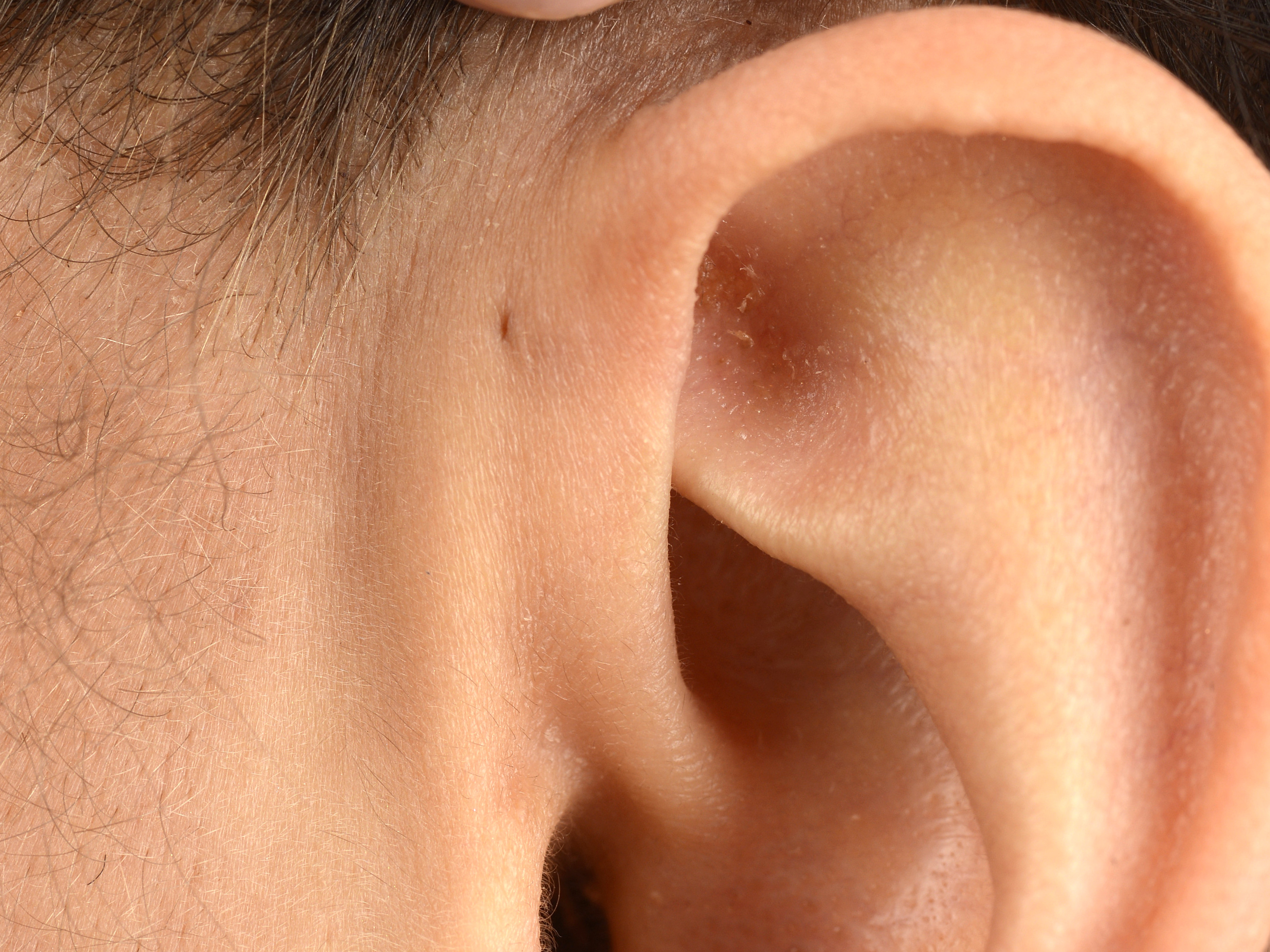 oor, ter hoogte van het begin van de helix. Het is vanaf de geboorte