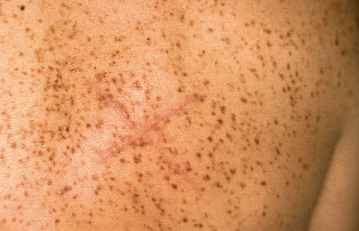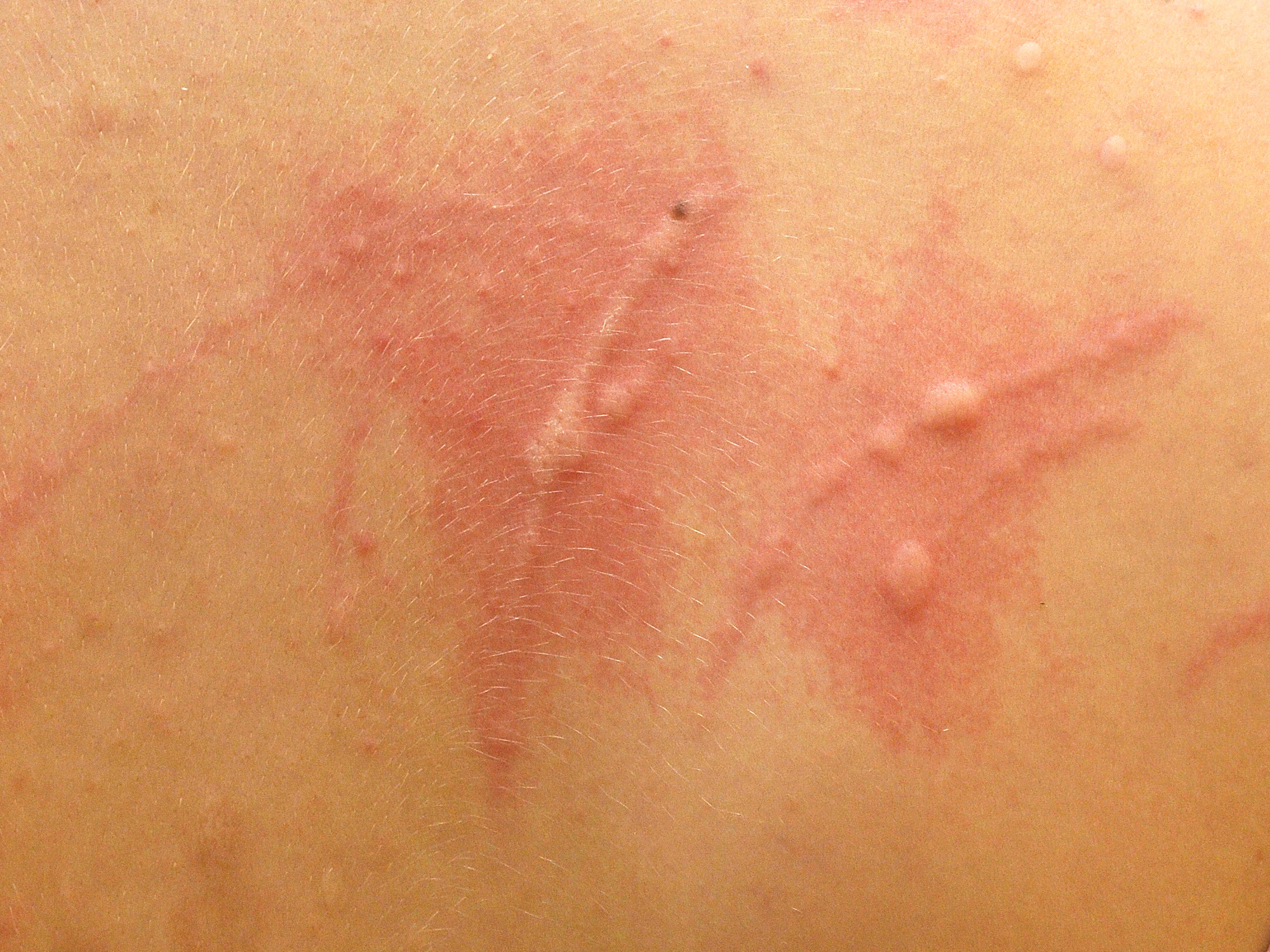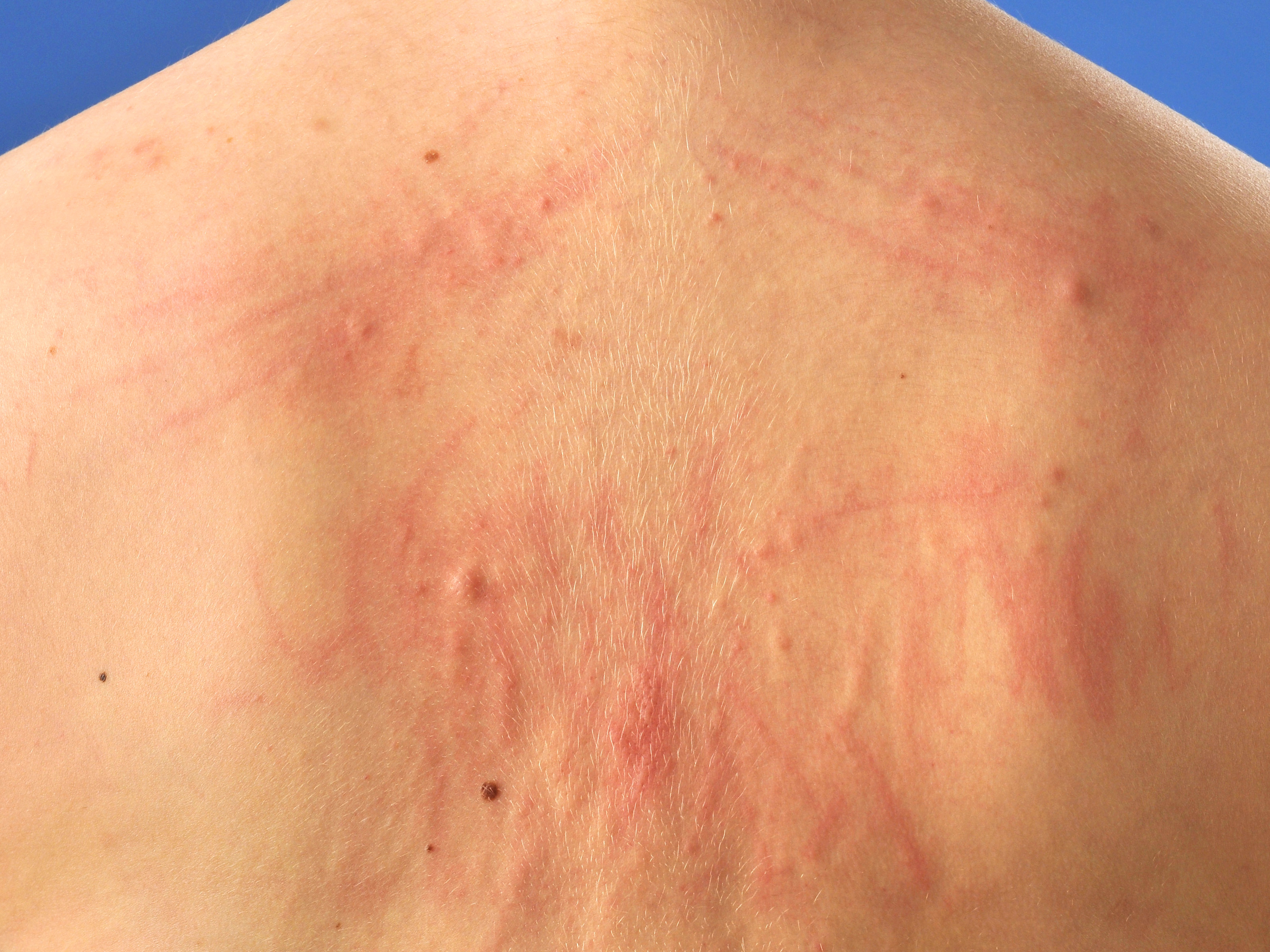 pigmentosa). Bij het trekken van een streep over de huid (met